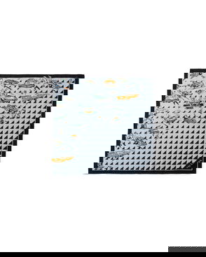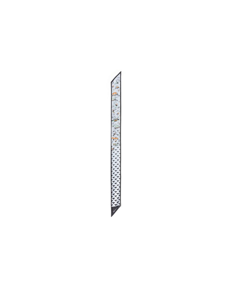 Printed Silk Twill Skinny Scarf, Woman, Black/sky Blue