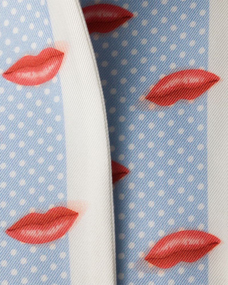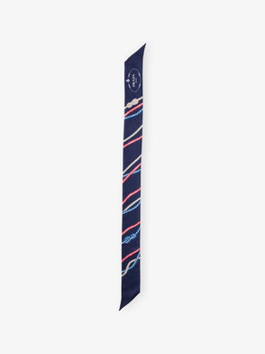 Printed Silk Twill Skinny Scarf, Woman, Light Blue