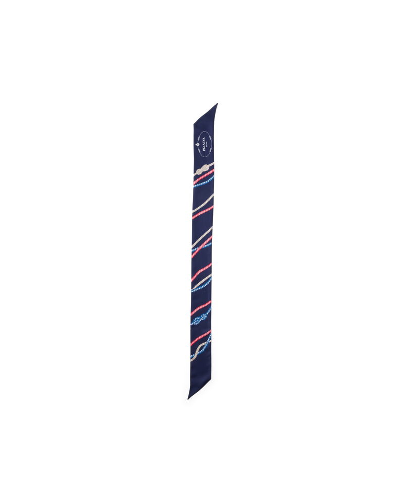 Printed Silk Twill Skinny Scarf, Woman, Navy