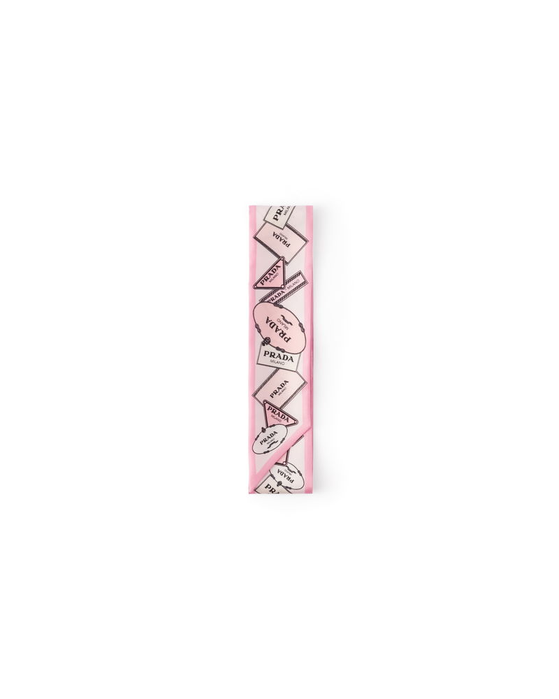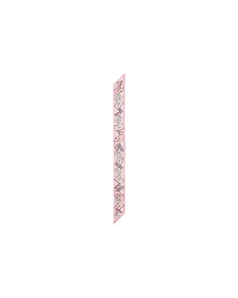Printed Silk Twill Skinny Scarf, Woman, Pink