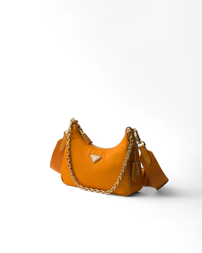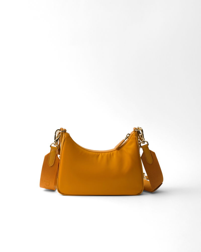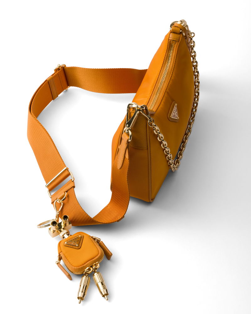 Re-edition 2005 Re-nylon And Saffiano Leather Bag With Charm, Woman, Amber