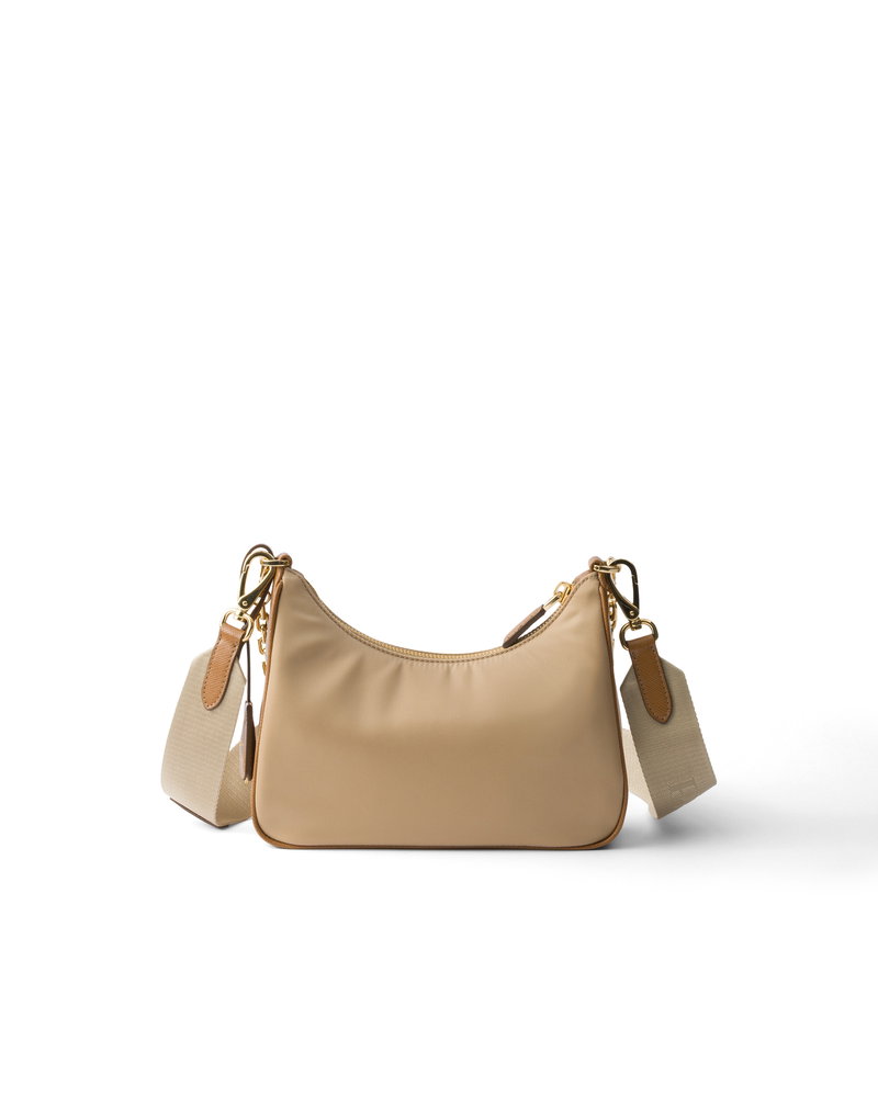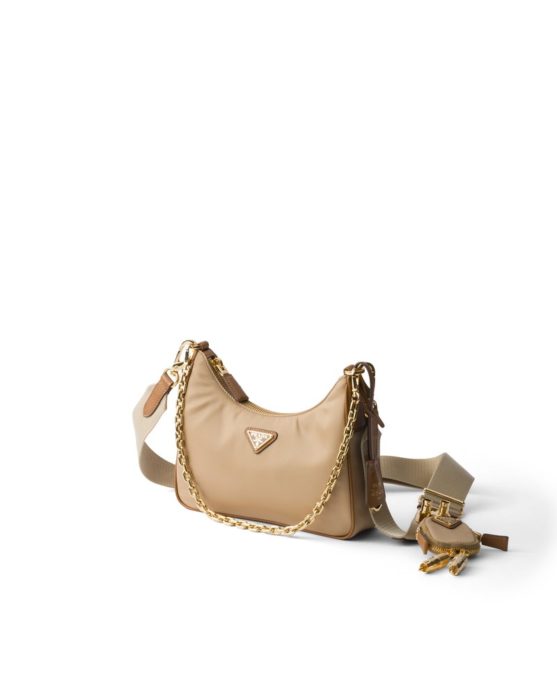 Re-edition 2005 Re-nylon And Saffiano Leather Bag With Charm, Woman, Camel/caramel