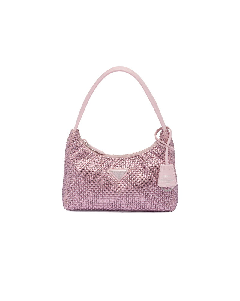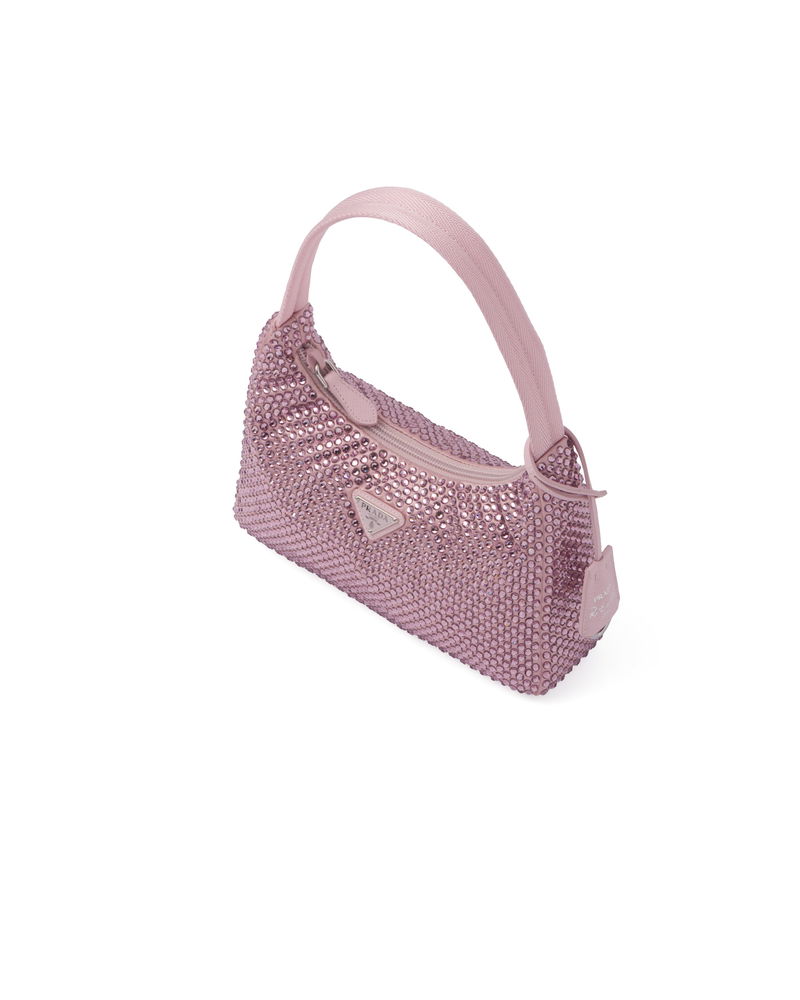 Re-edition Mini Satin Bag With Crystals, Woman, Alabaster Pink
