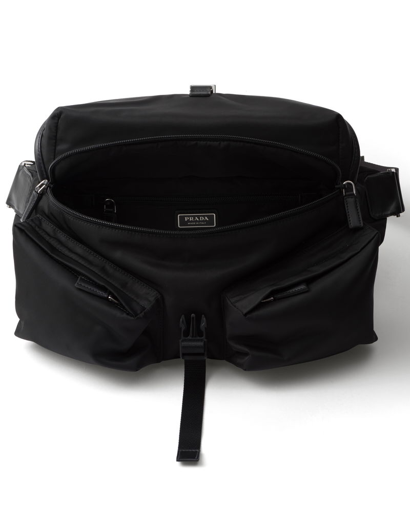 Re-nylon And Leather Shoulder Bag, Man, Black