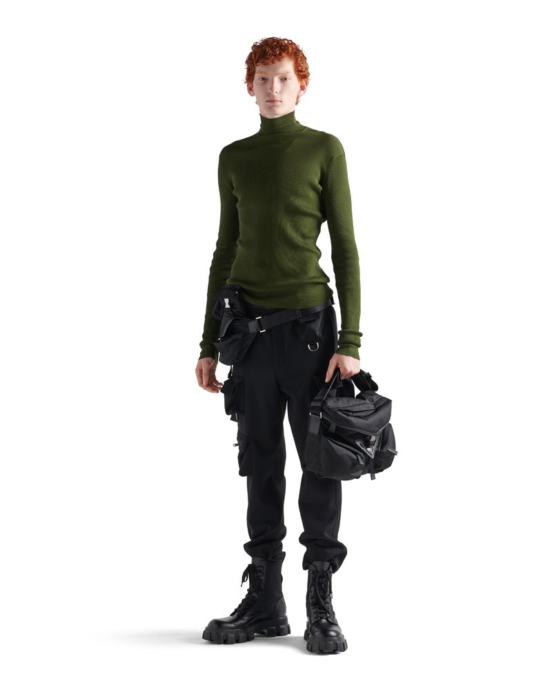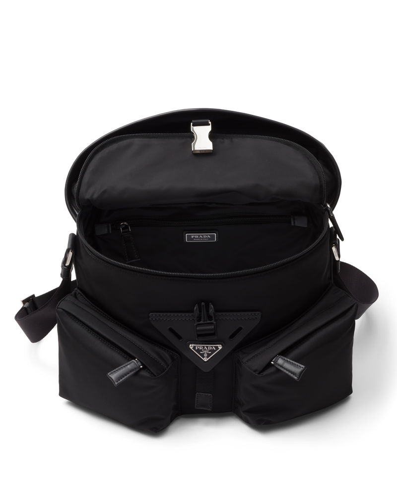 Re-nylon And Leather Shoulder Bag, Man, Black