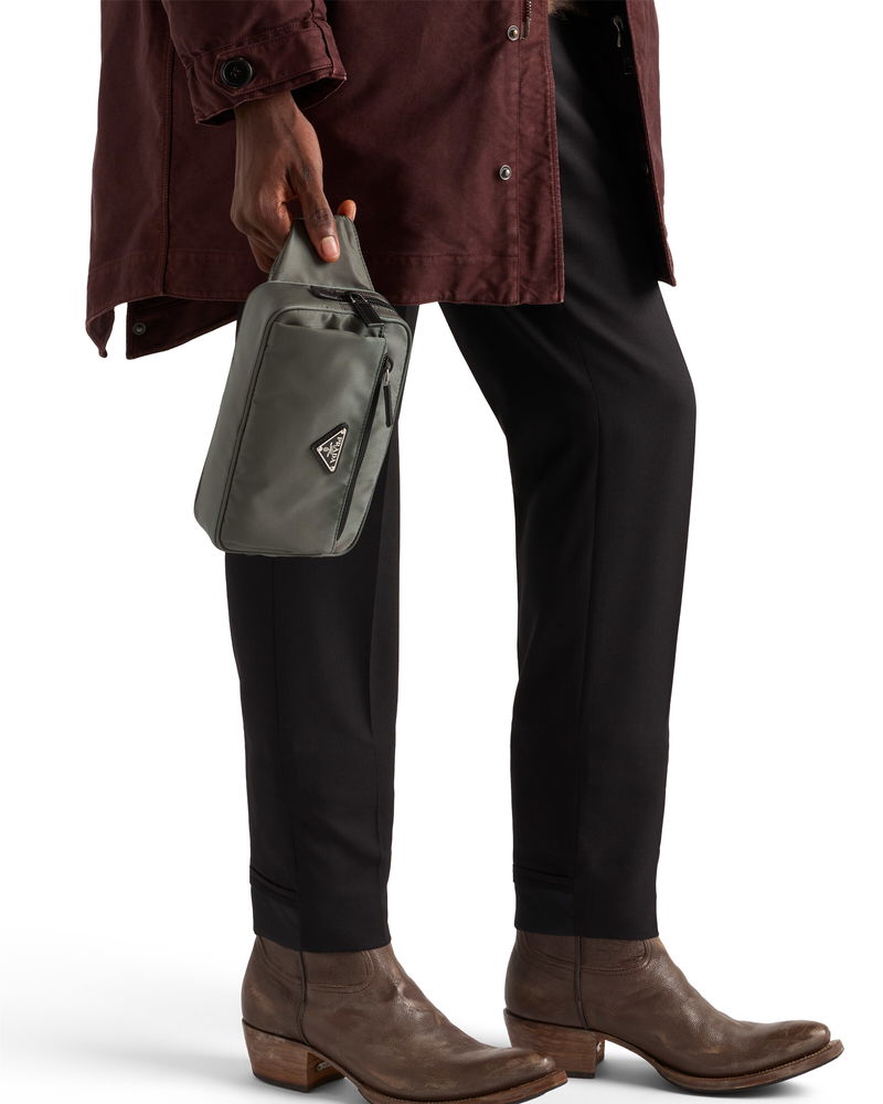Re-nylon And Saffiano Leather Belt Bag, Man, Forest Green