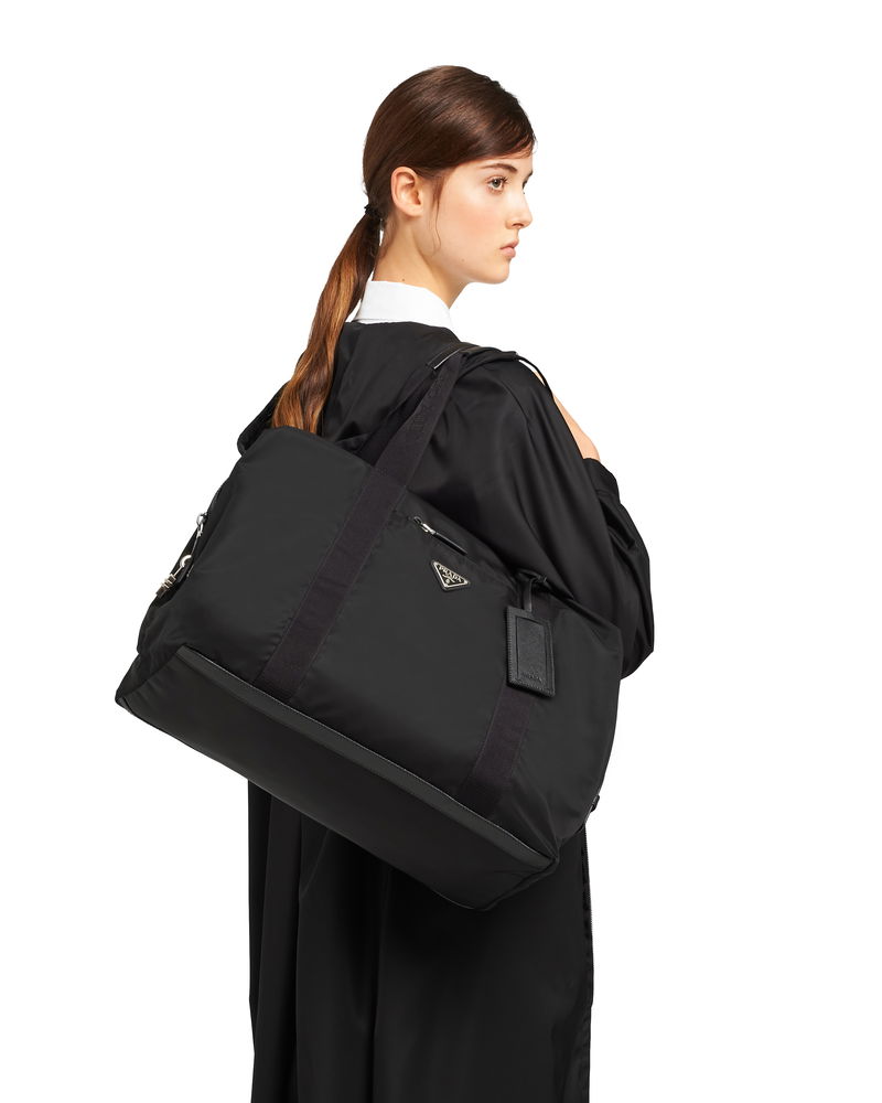 Re-nylon And Saffiano Leather Duffle Bag, , Black