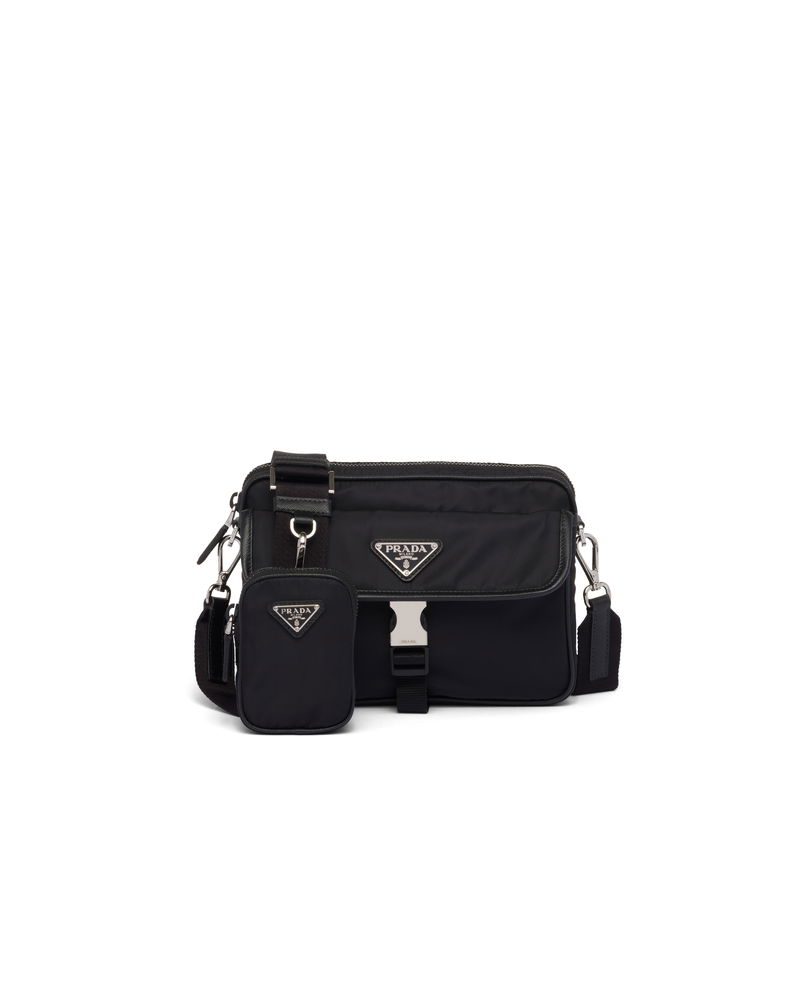 Re-nylon And Saffiano Leather Shoulder Bag, Man, Black