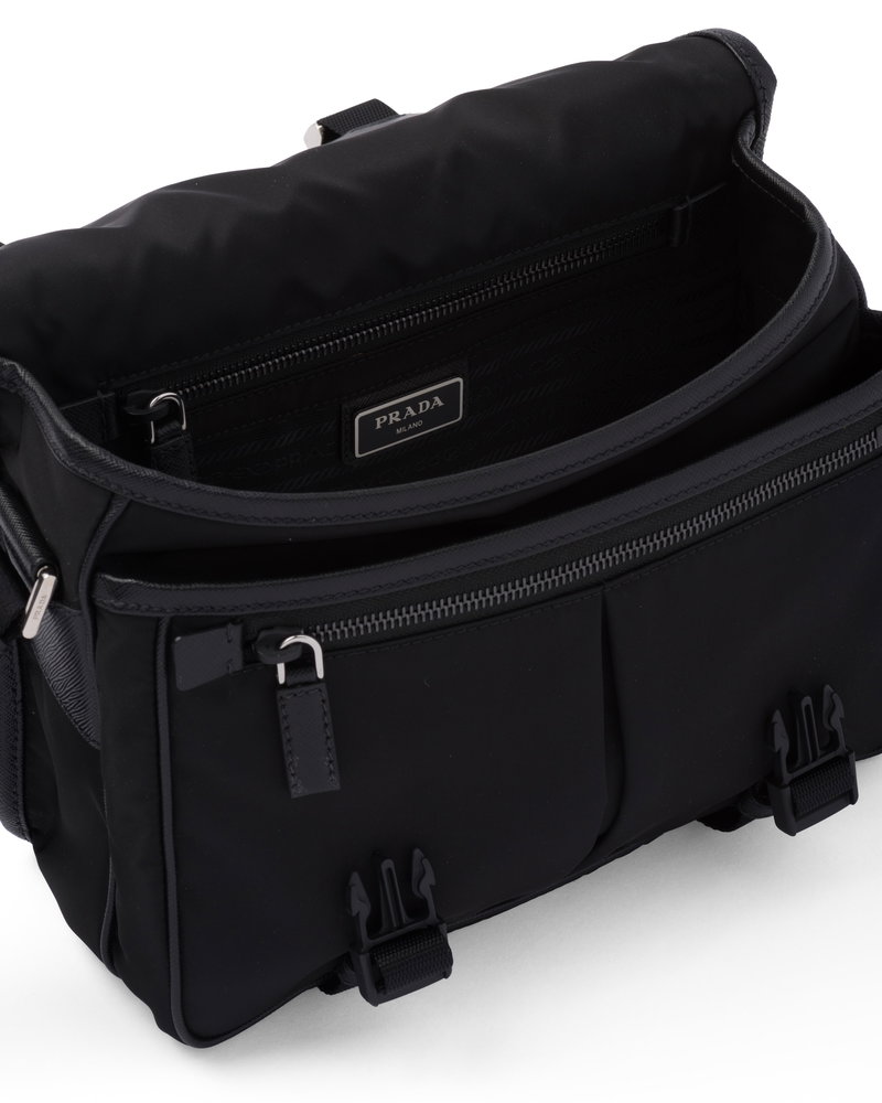 Re-nylon And Saffiano Leather Shoulder Bag, Man, Black