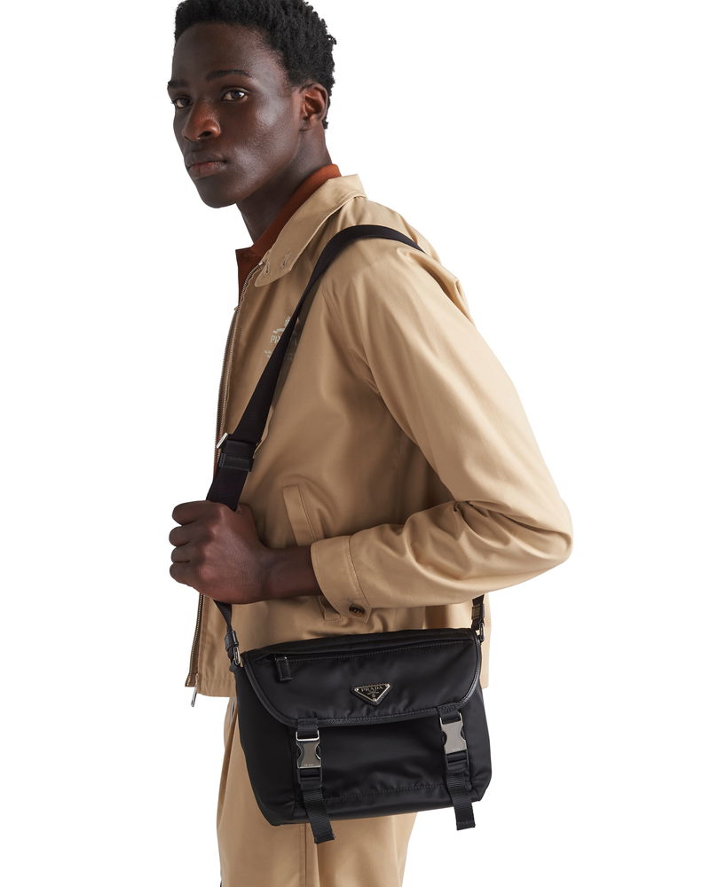 Re-nylon And Saffiano Leather Shoulder Bag, Man, Black
