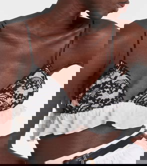 This bralette from Prada is the perfect layering piece. It's made from sustainable Re-Nylon, the brand's signature fabric, and embellished with the iconic logo plate, which is trimmed by Saffiano leather.