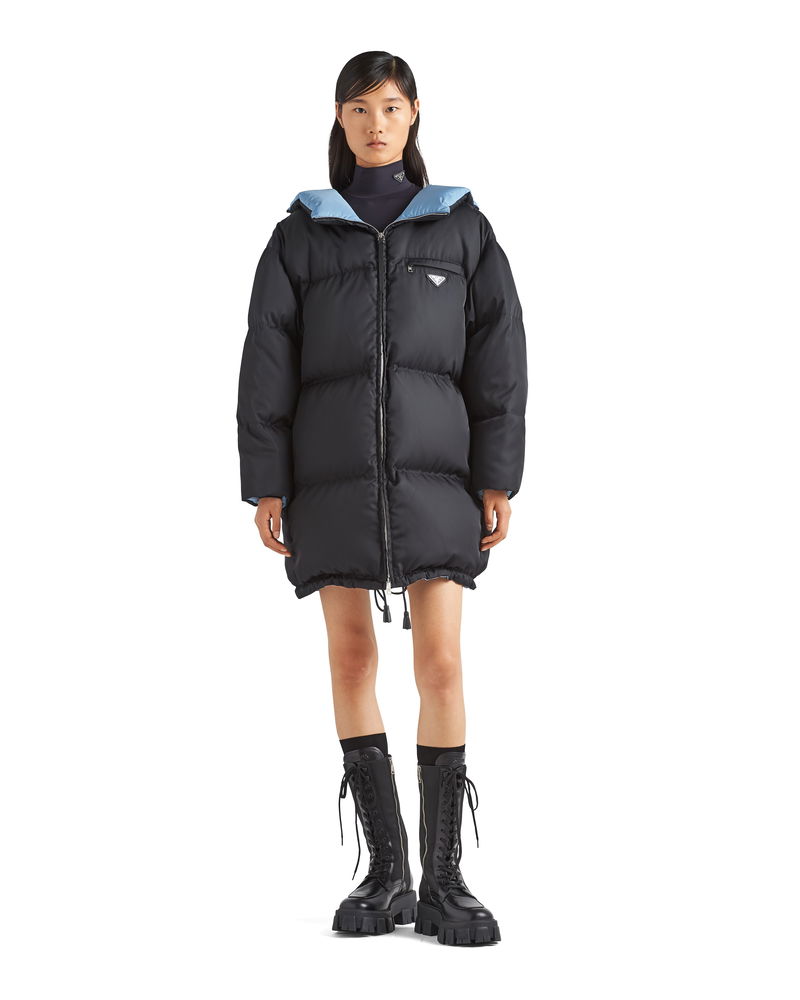 Re-nylon Gabardine Hooded Down Coat, Woman, Black, Size 36