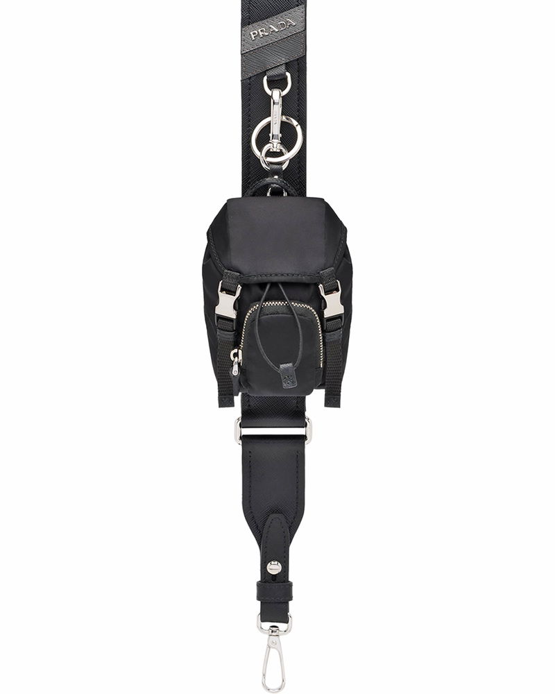 Re-nylon Mini Pouch Keychain Charm, Man, Black