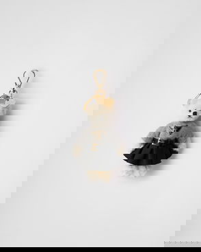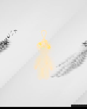 Re-nylon teddy keychain charm. With snap hook and ring. Enameled metal triangle logo.
