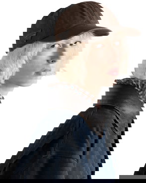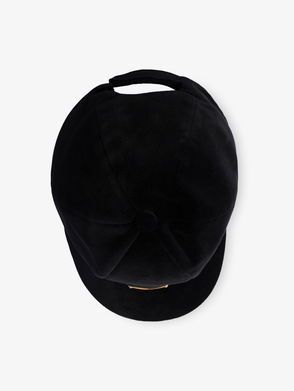 • Curved visor, triangle logo at side, four-panel construction, elasticated strap at back