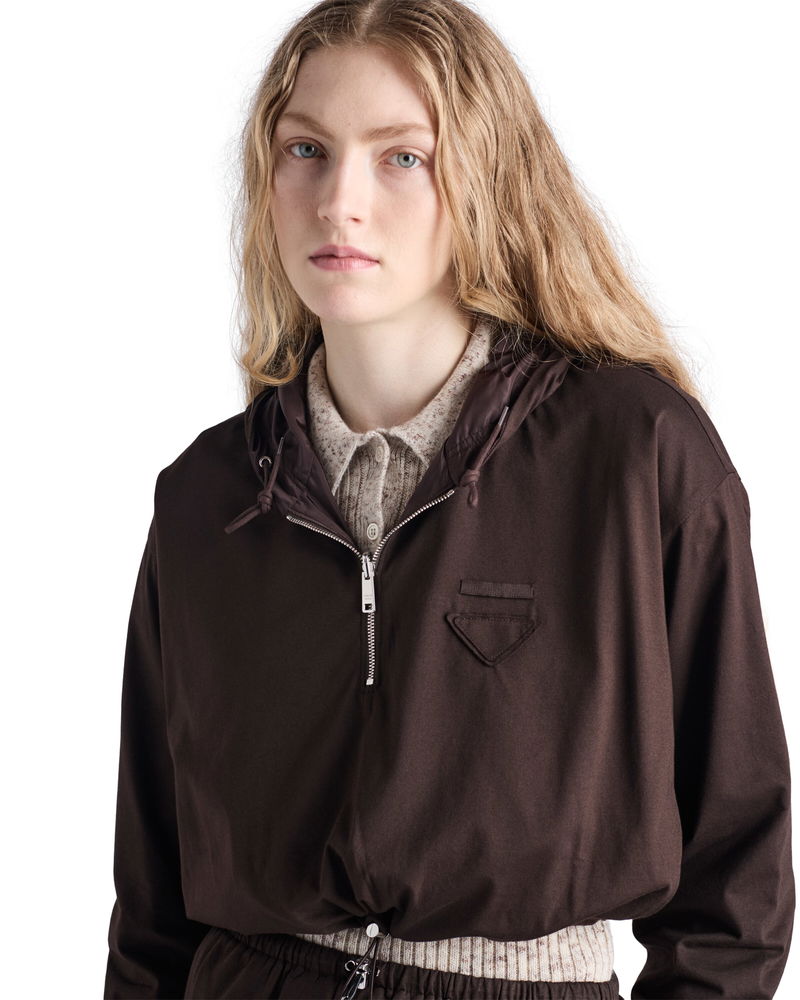 Reversible Cotton Jersey And Re-nylon Hoodie, Woman, Ebony, Size XS