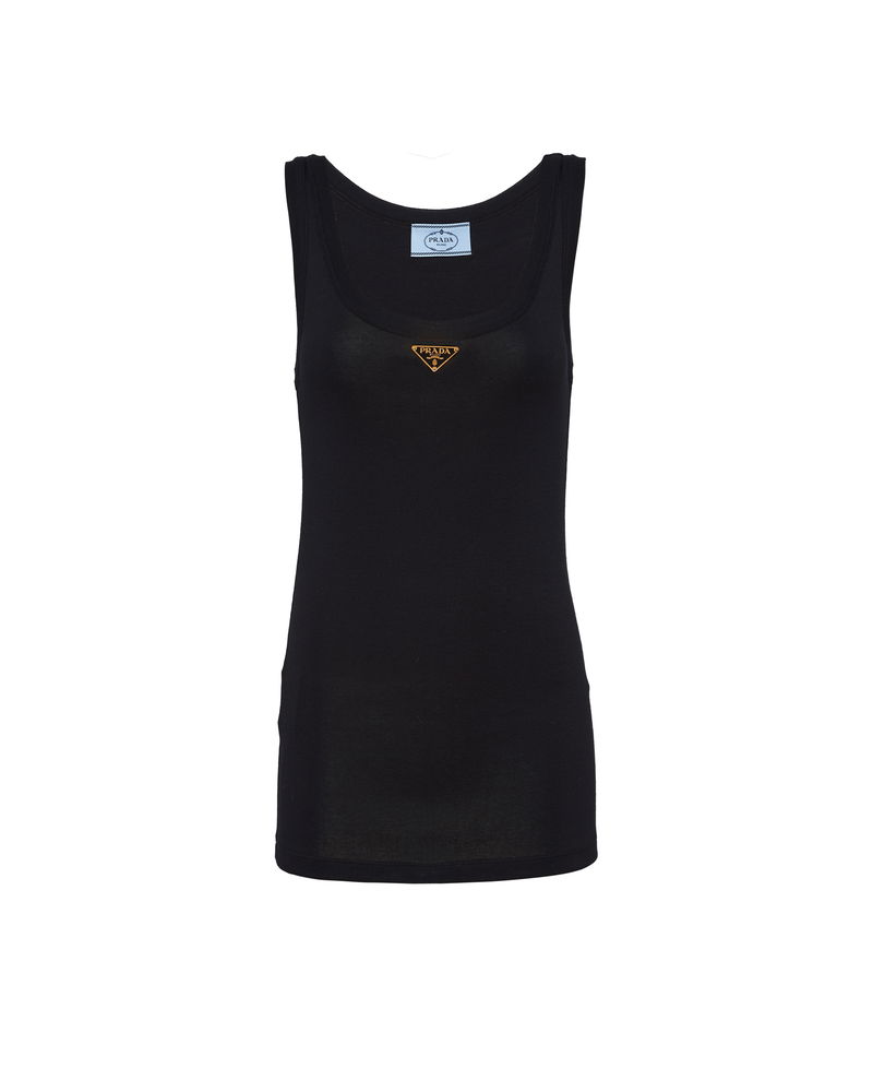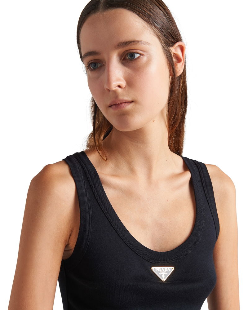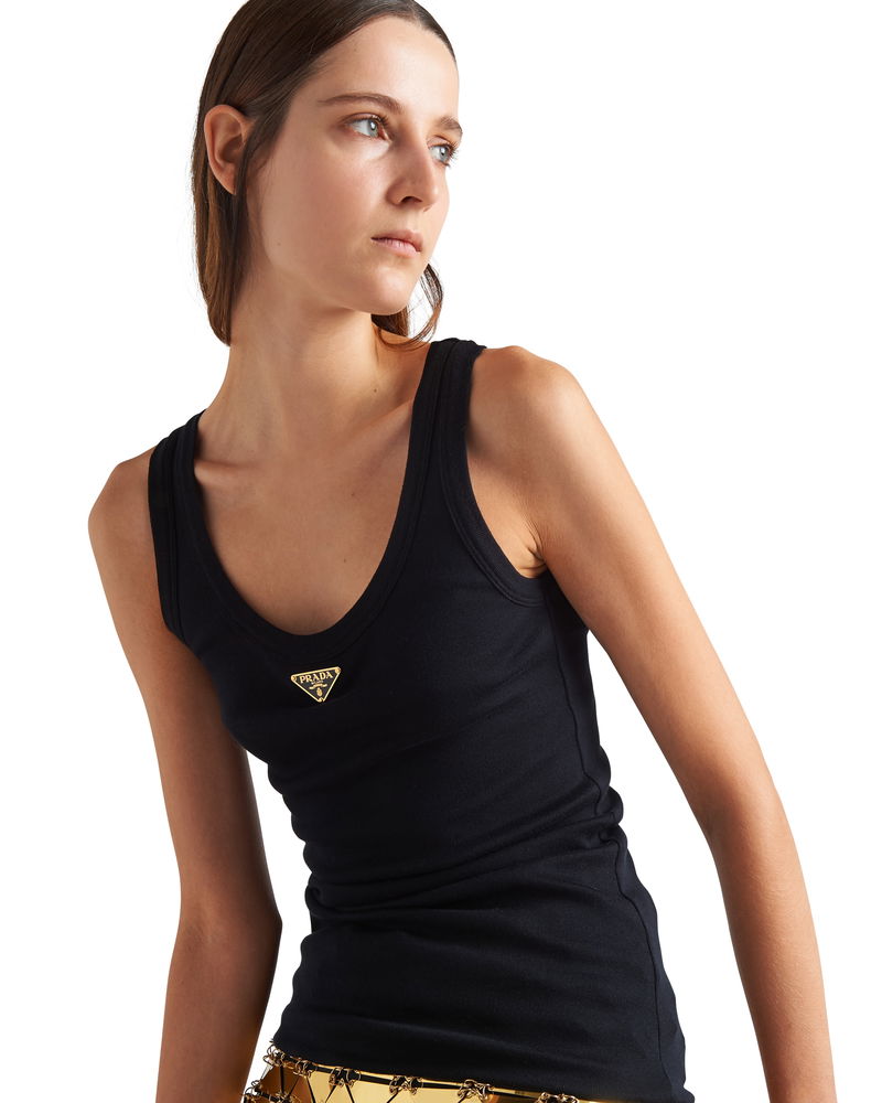 Ribbed Knit Jersey Tank Top, Woman, Black, Size 36