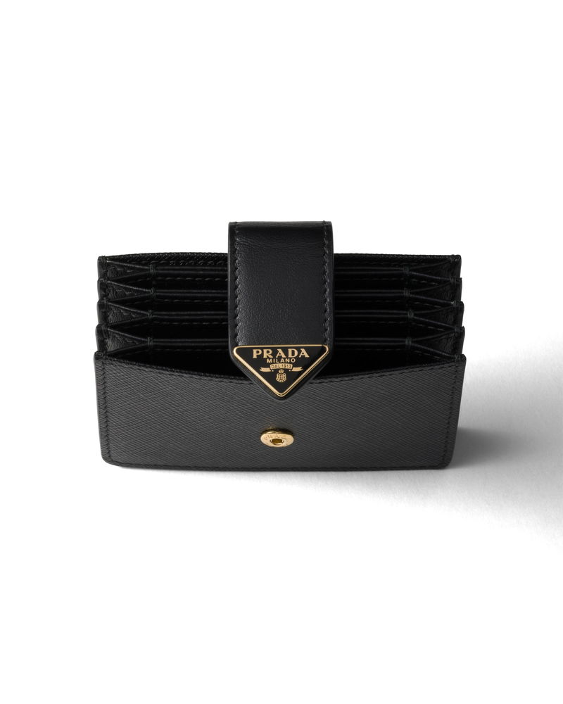 Saffiano And Smooth Leather Card Holder, Woman, Black