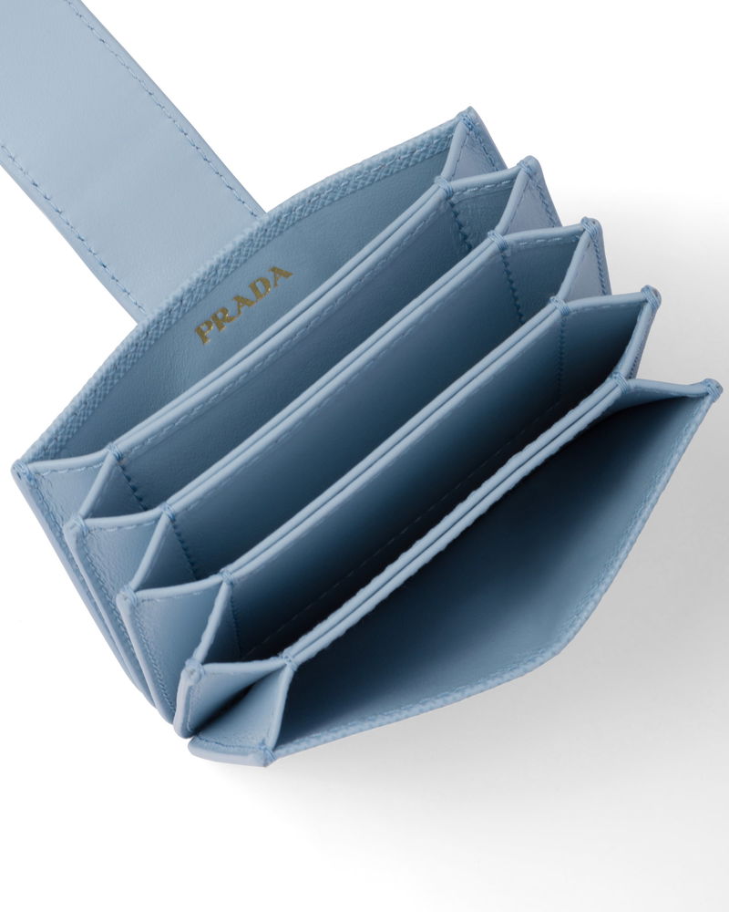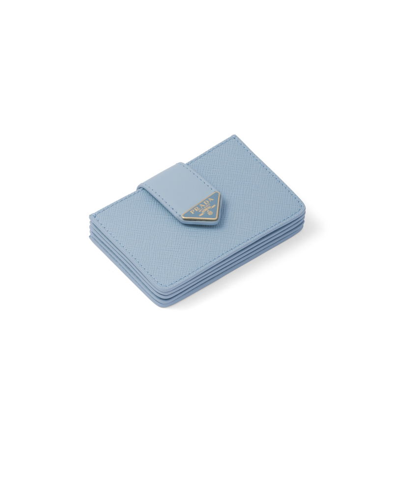 Saffiano And Smooth Leather Card Holder, Woman, Light Blue
