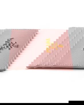Saffiano And Smooth Leather Card Holder, Woman, Peach