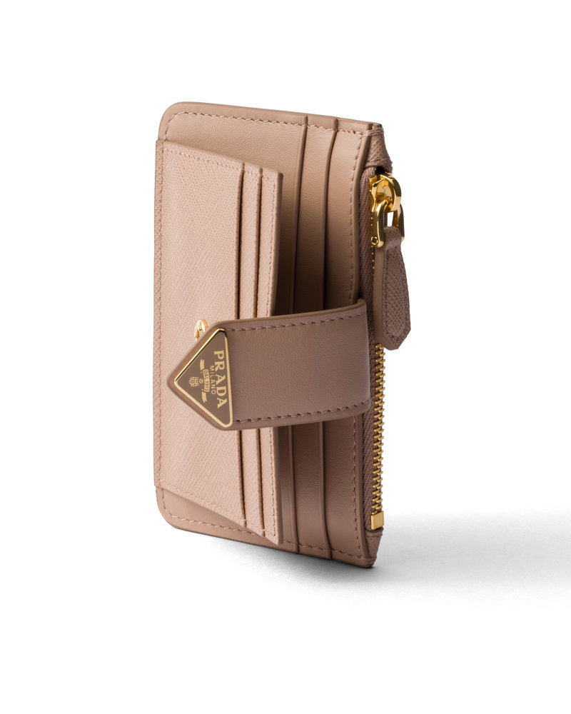 Saffiano And Smooth Leather Card Holder, Woman, Powder Pink