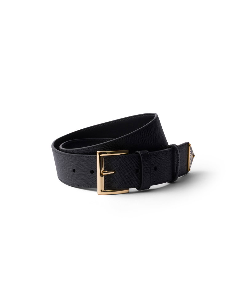 Saffiano Leather Belt, Woman, Black, Size 80