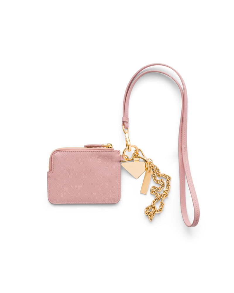 Saffiano Leather Card Holder With Shoulder Strap, Woman, Peach