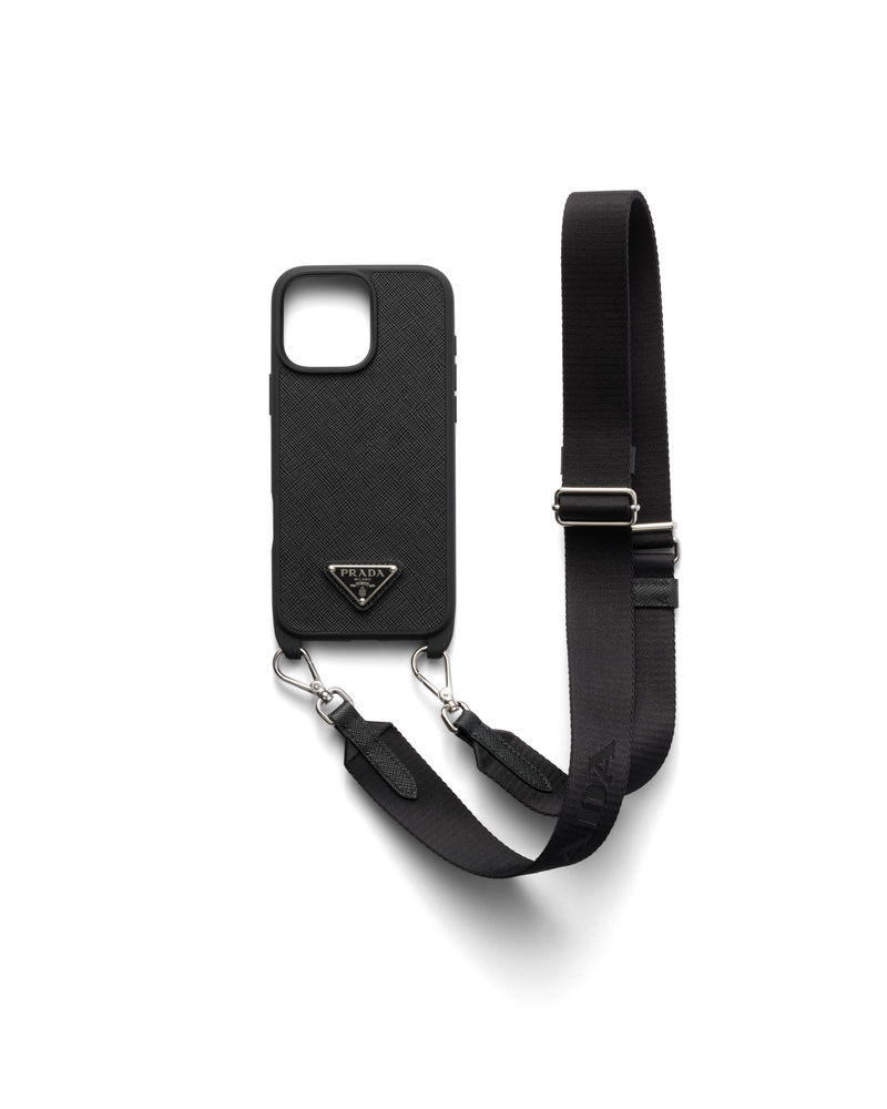 Saffiano Leather Case For Iphone 16 Pro Max, Woman, Black
