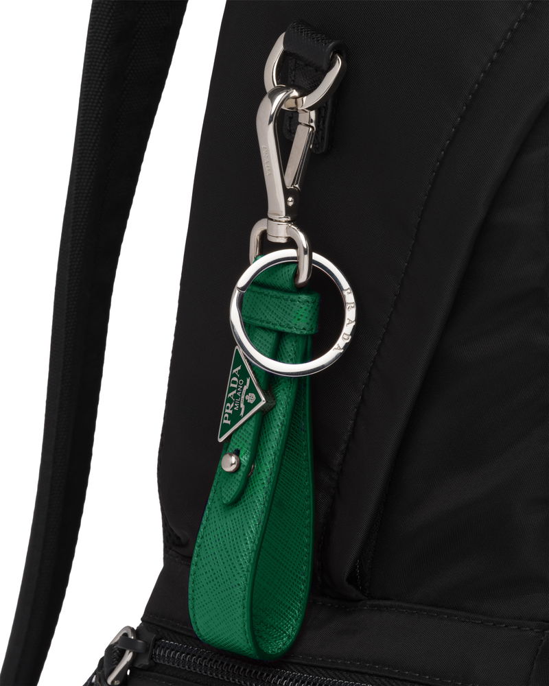 Saffiano Leather Keychain, Man, Emerald Green