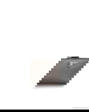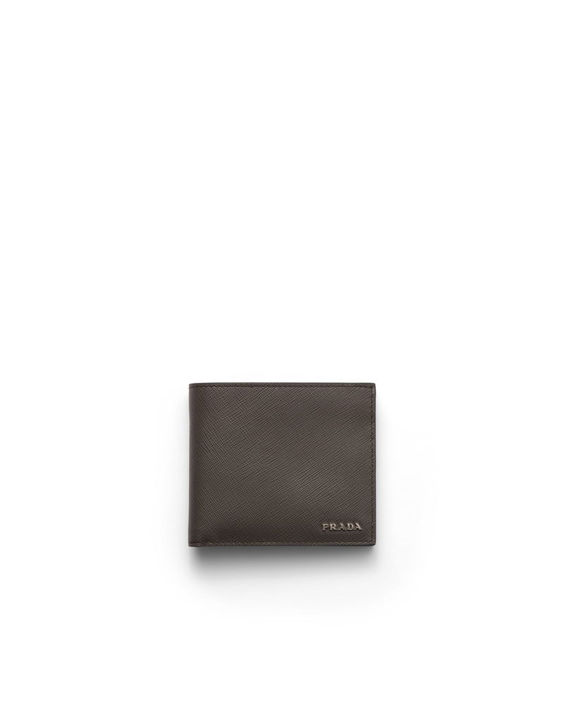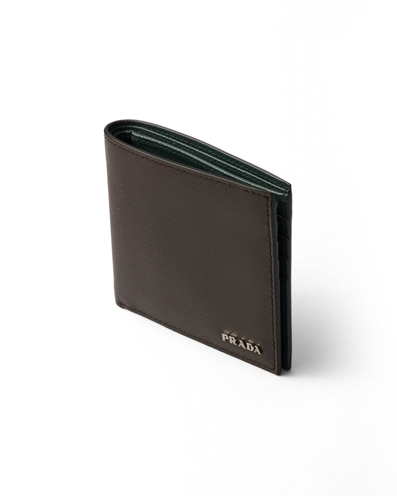 Saffiano Leather Wallet, Man, Smoky Gray/emerald