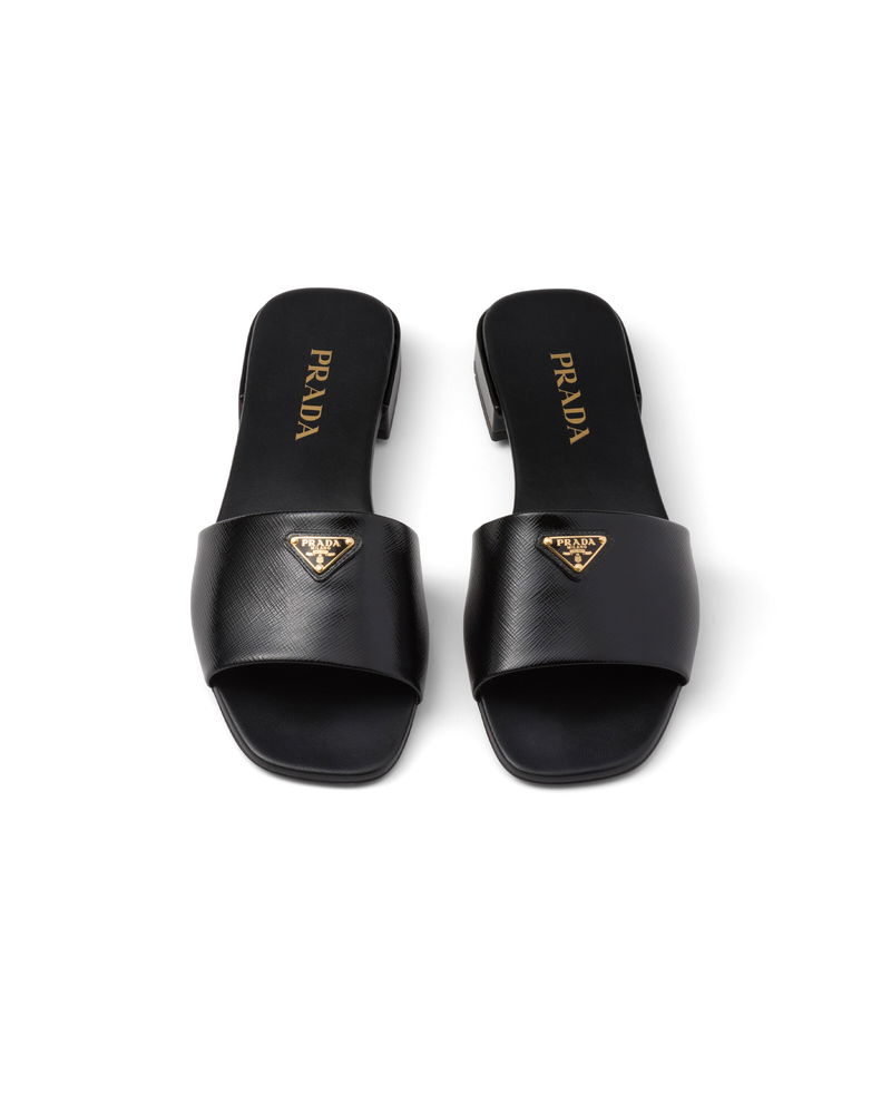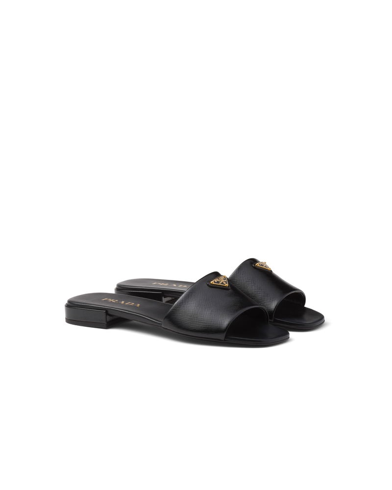 Saffiano Patent Leather Slides, Woman, Black, Size 36,5