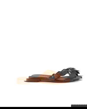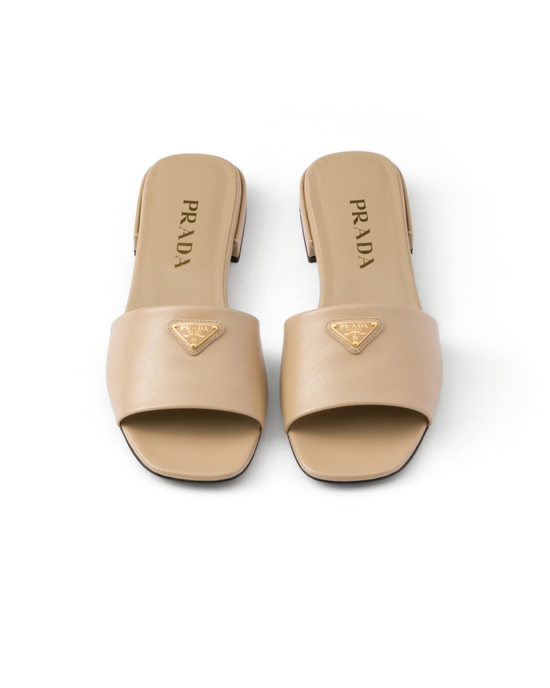 Saffiano patent leather slides.