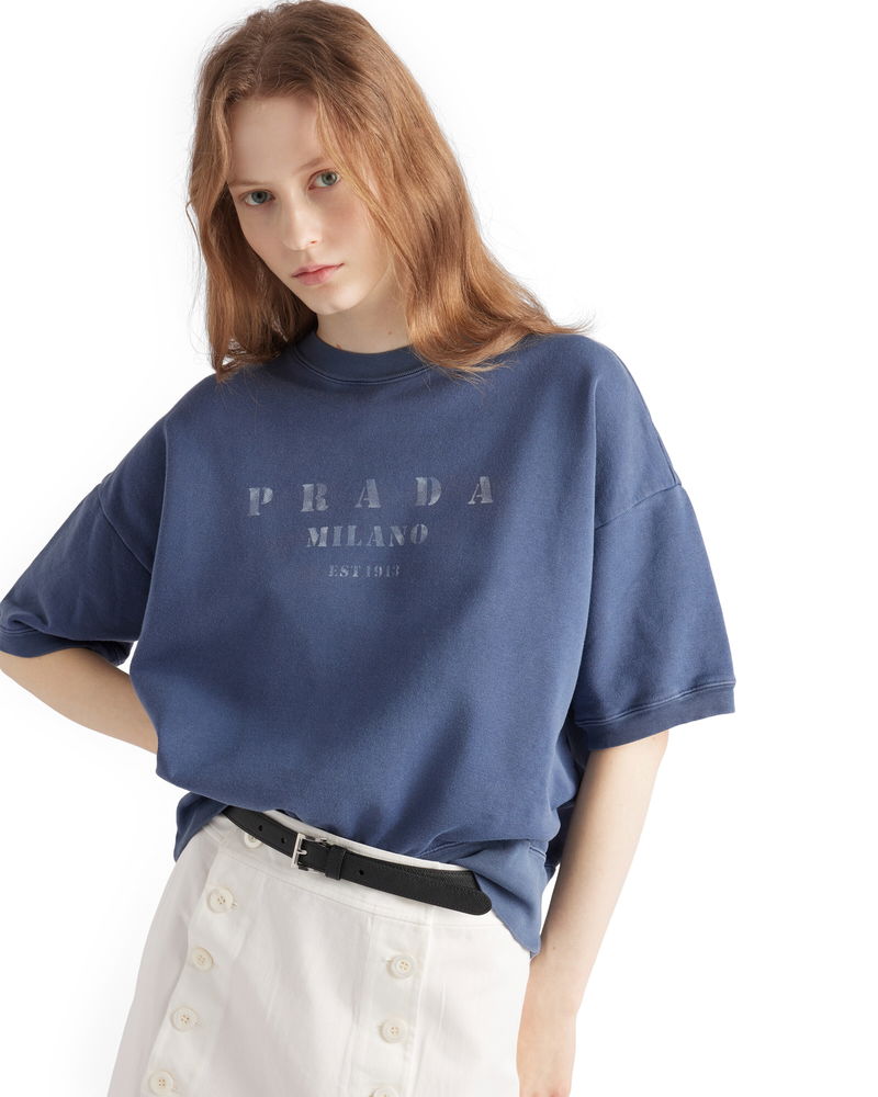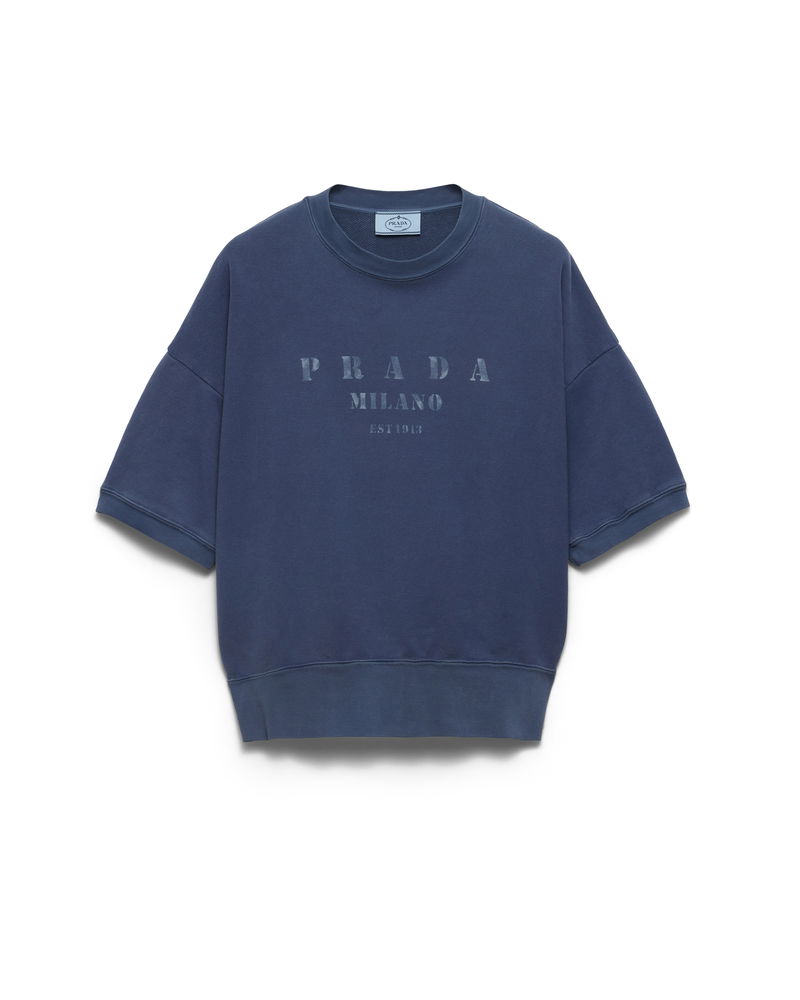 Short-sleeved Cotton Sweatshirt, Woman, Navy, Size L