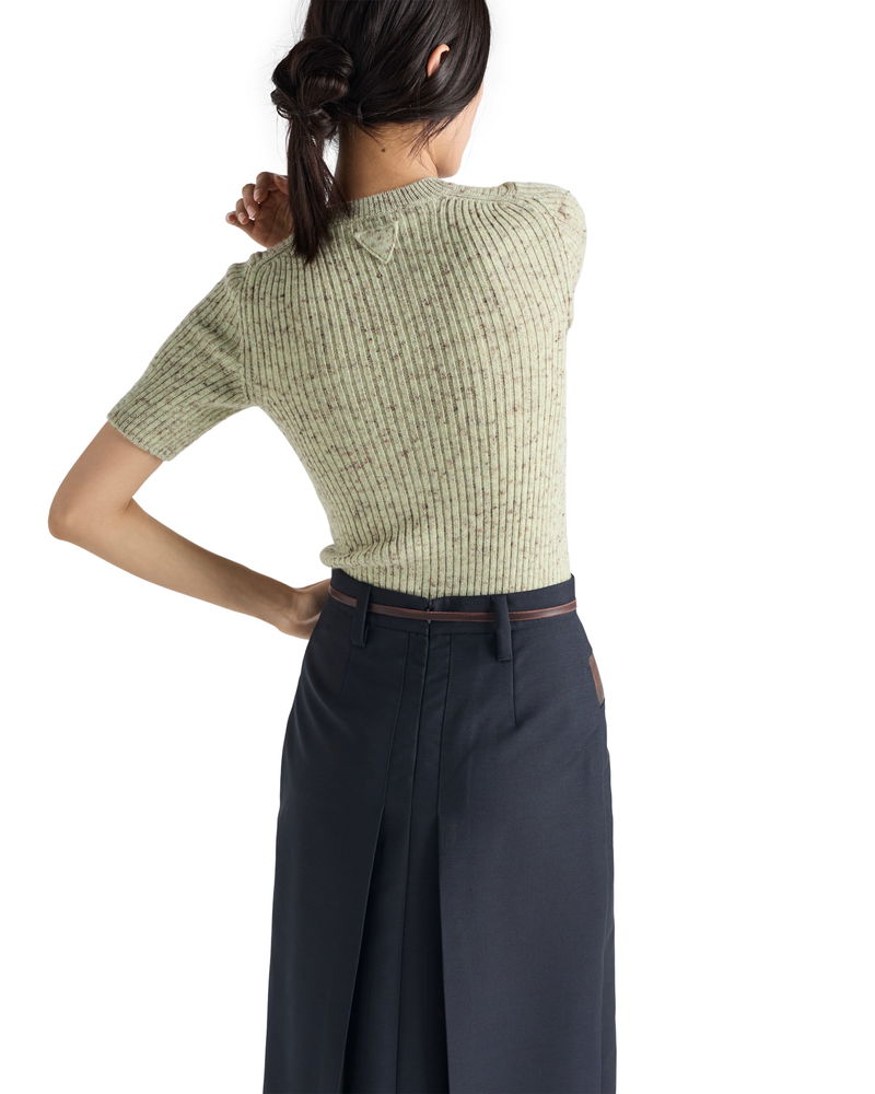 Short-sleeved Crew-neck Sweater, Woman, Powder Blue, Size 38