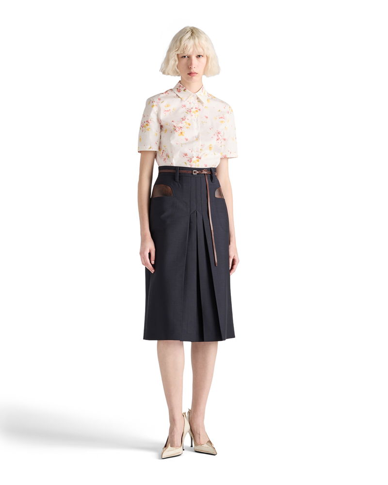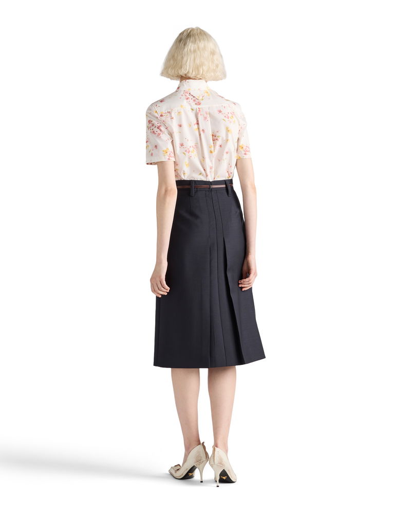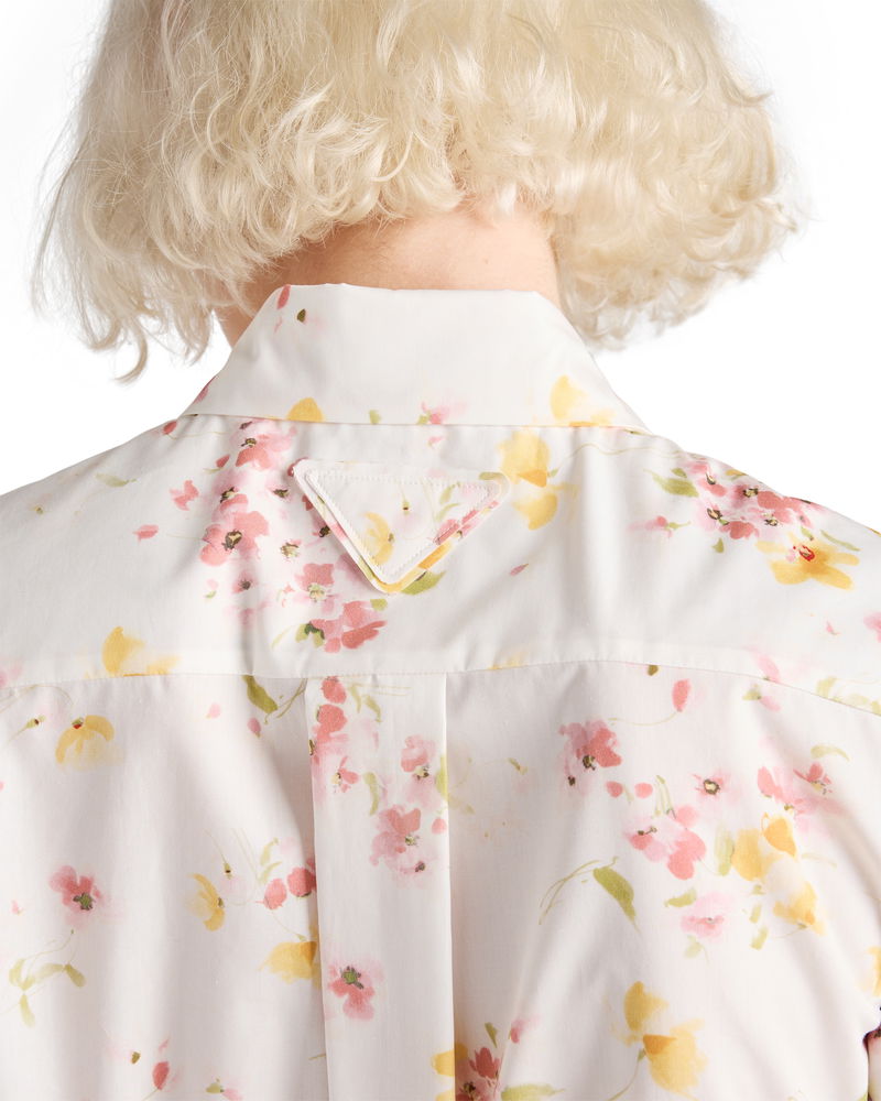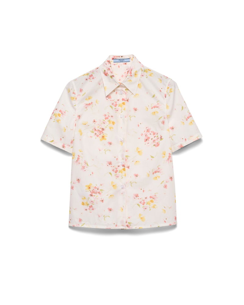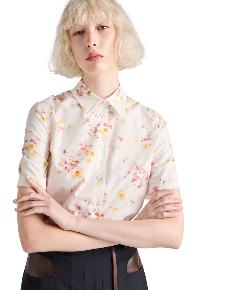 Short-sleeved Floral Print Poplin Shirt, Woman, Begonia Pink, Size 36