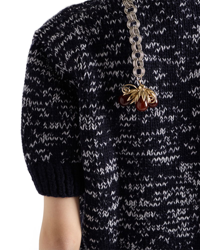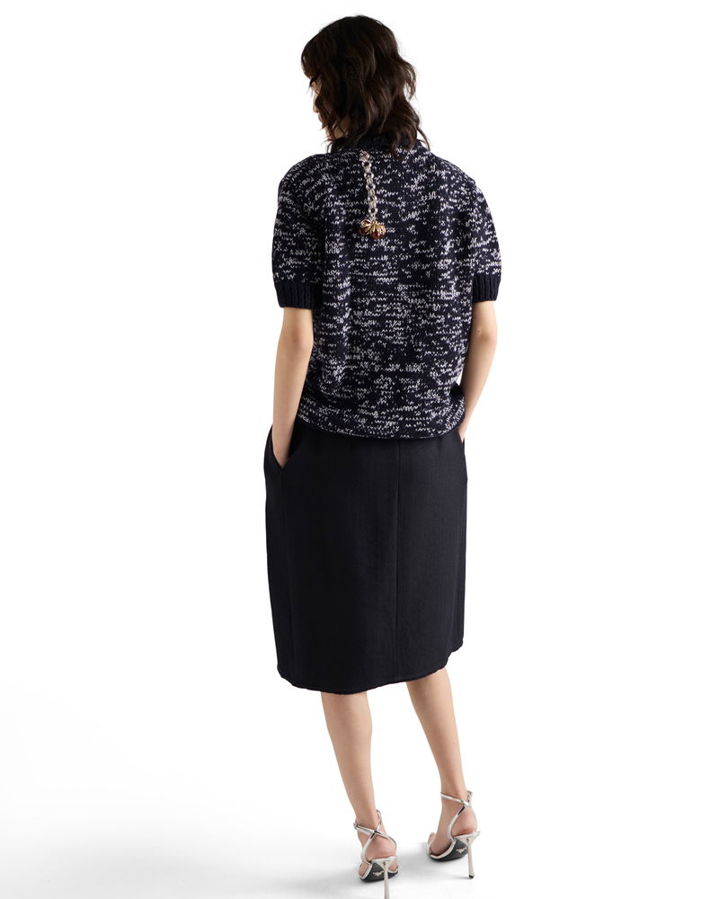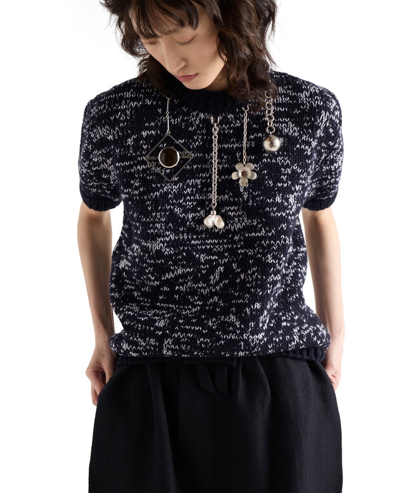 Short-sleeved Wool Sweater With Pendants, Woman, Blue/white, Size 38