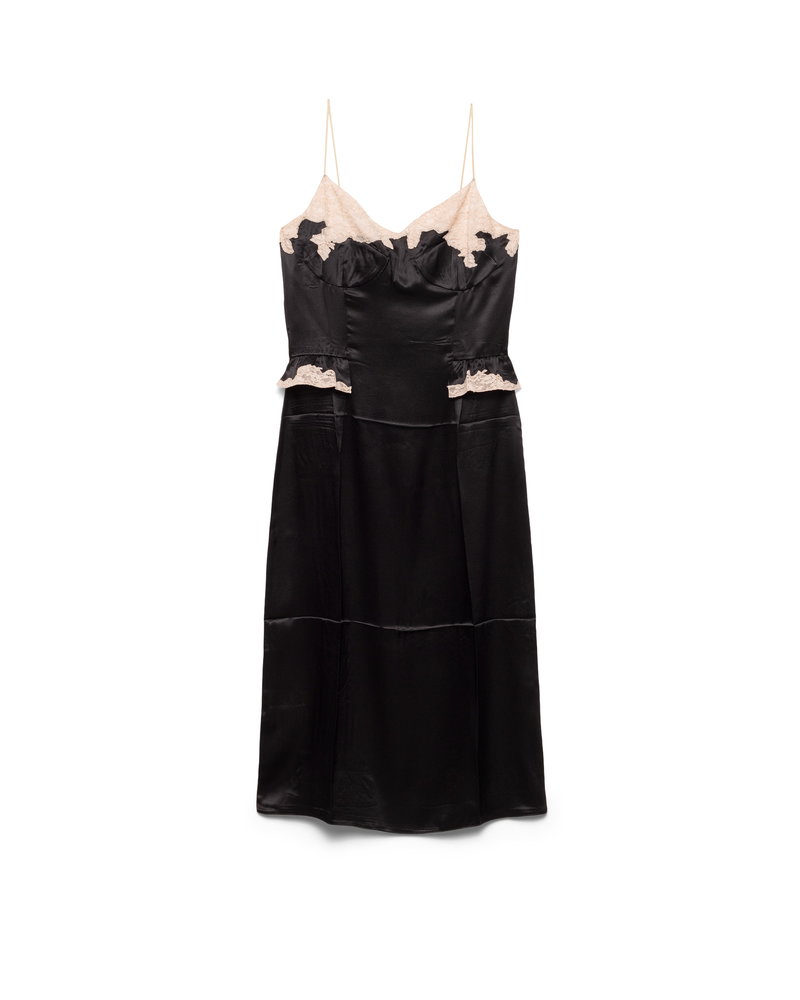 Silk And Lace Dress, Woman, Black, Size 38