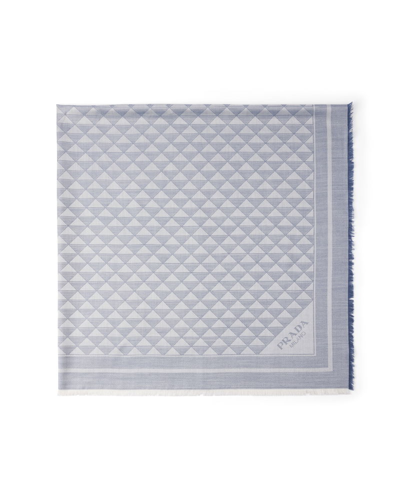 Silk And Wool Shawl, Woman, Aviator Blue/chalk White
