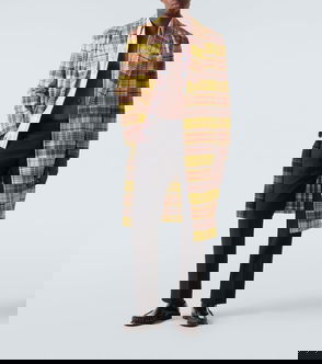 Jacquard-woven from virgin wool, this burgundy coat from Prada features an all-over geometric pattern. This longline silhouette has a wide notched lapel and single-breasted buttoned front.
