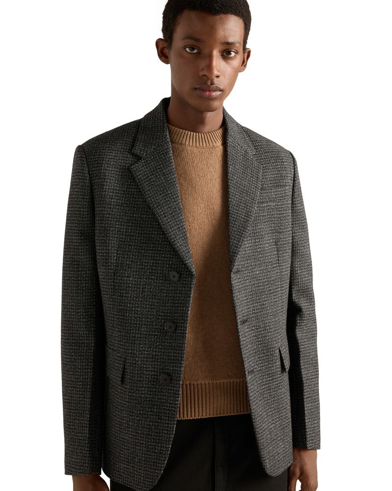 Single-breasted Wool Jacket, Man, Black/white, Size 48