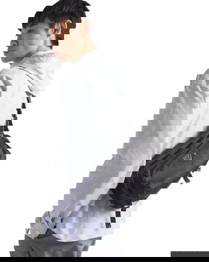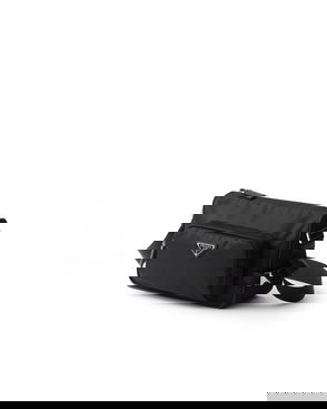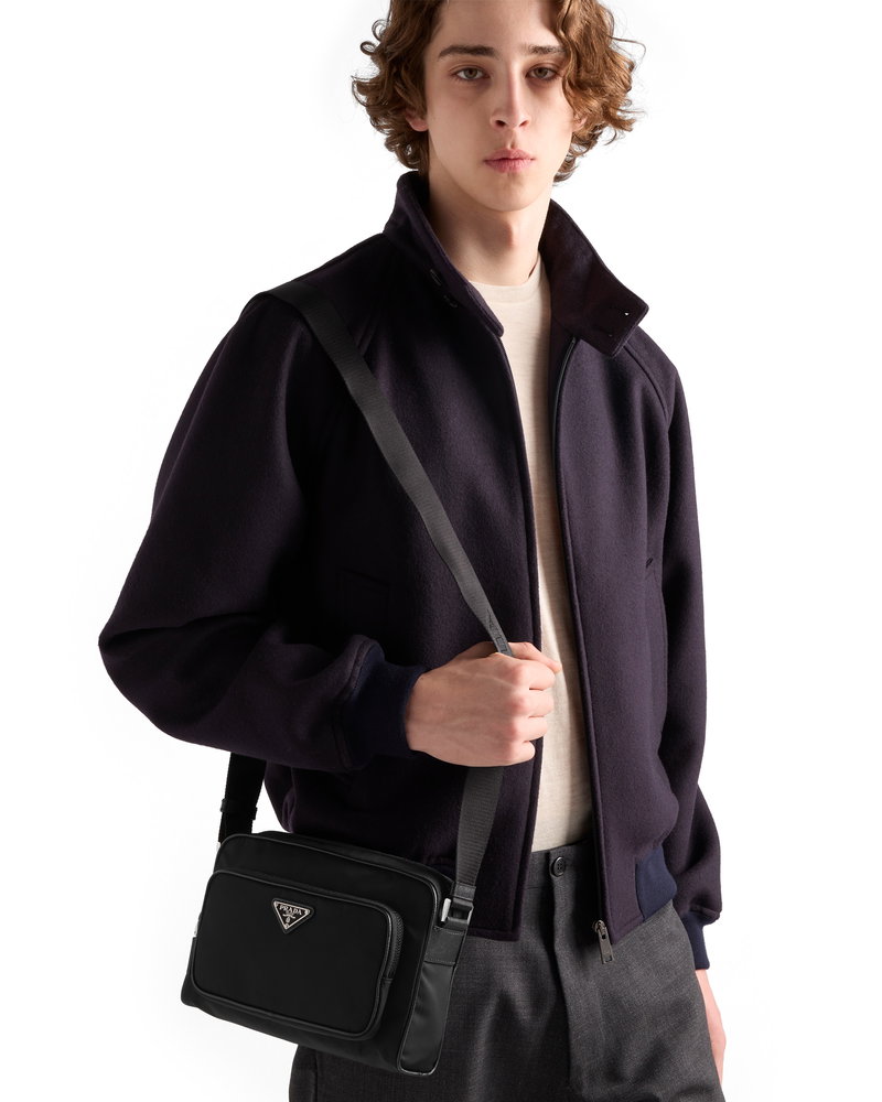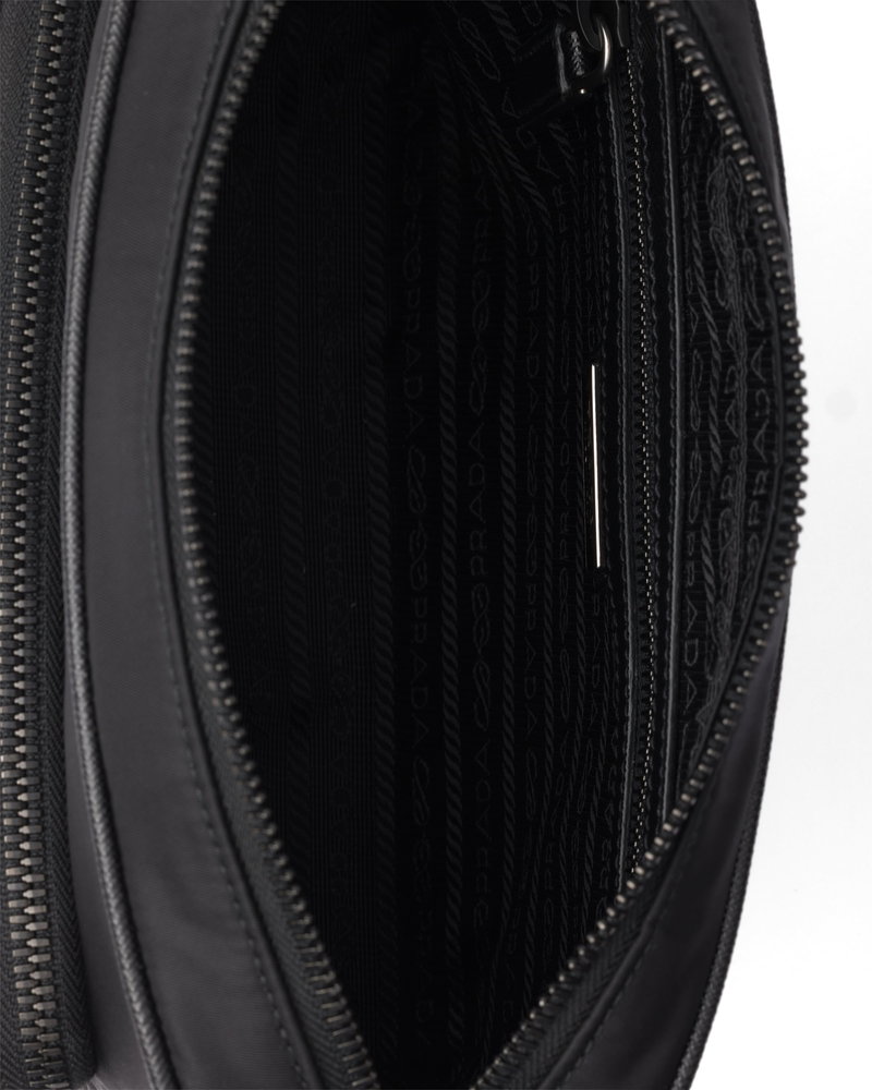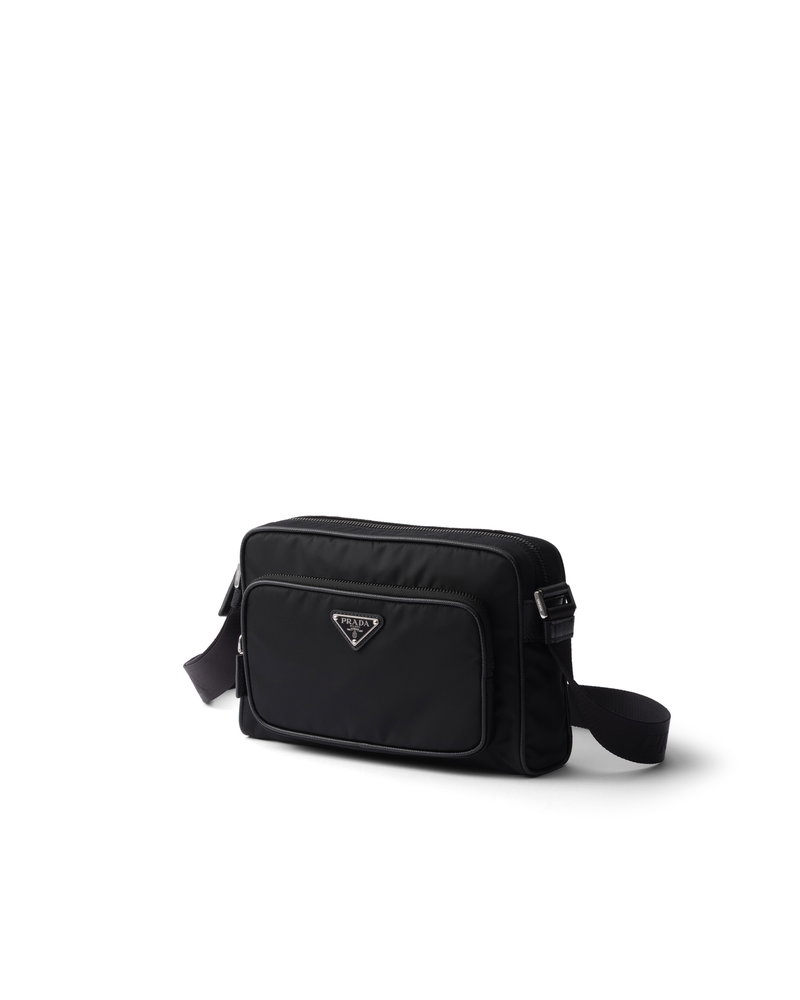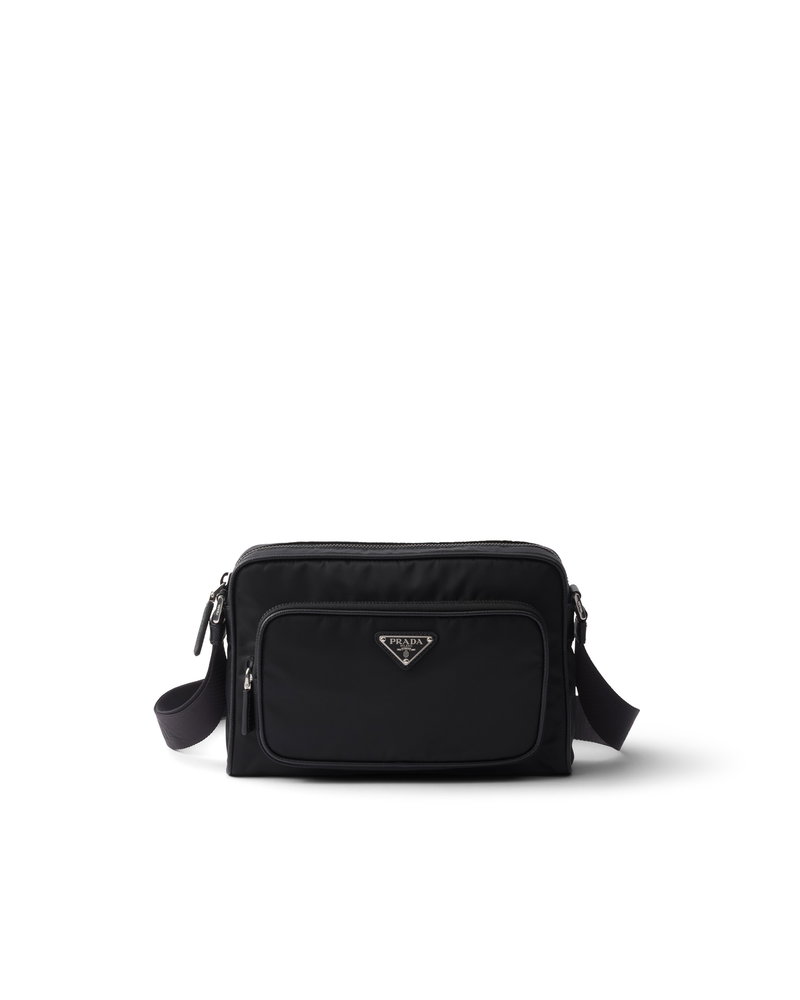 Small Re-nylon And Saffiano Leather Shoulder Bag, Man, Black