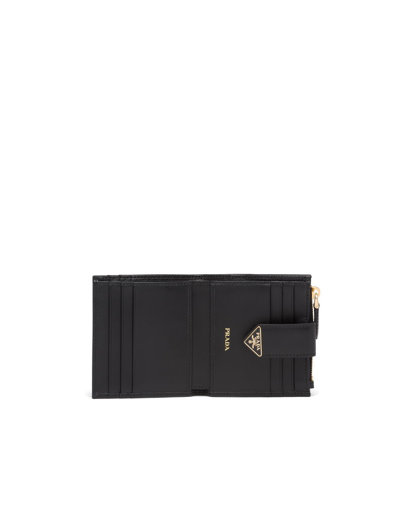 Small Saffiano And Smooth Leather Wallet, Woman, Black
