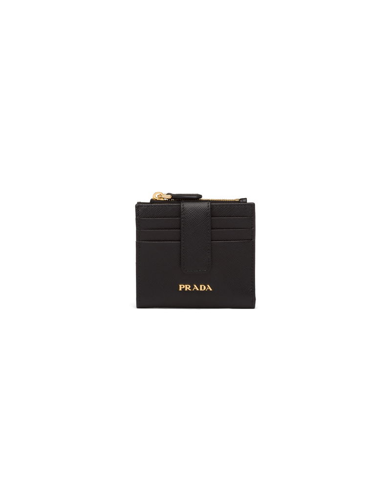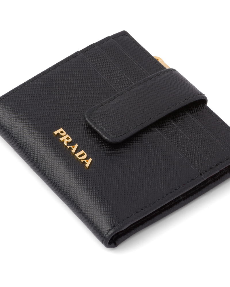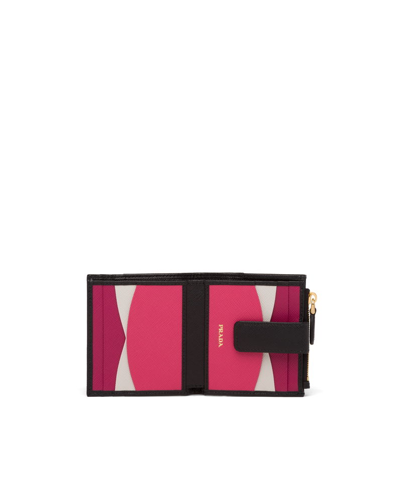 Small Saffiano Leather Wallet, Woman, Black/hibiscus