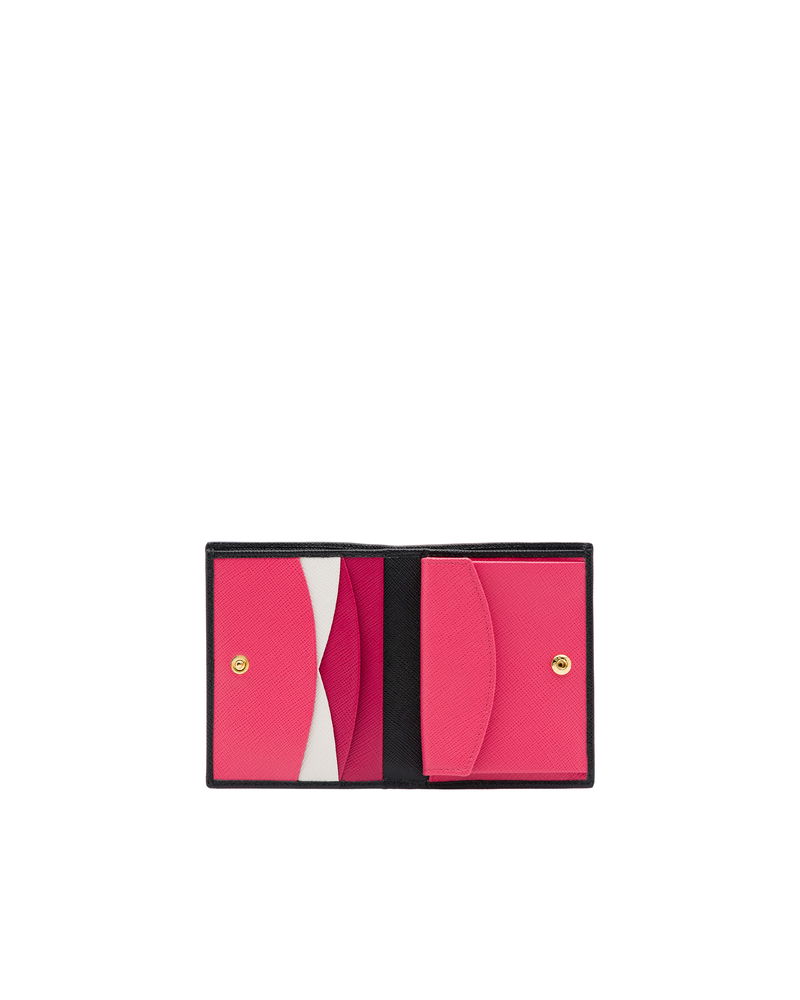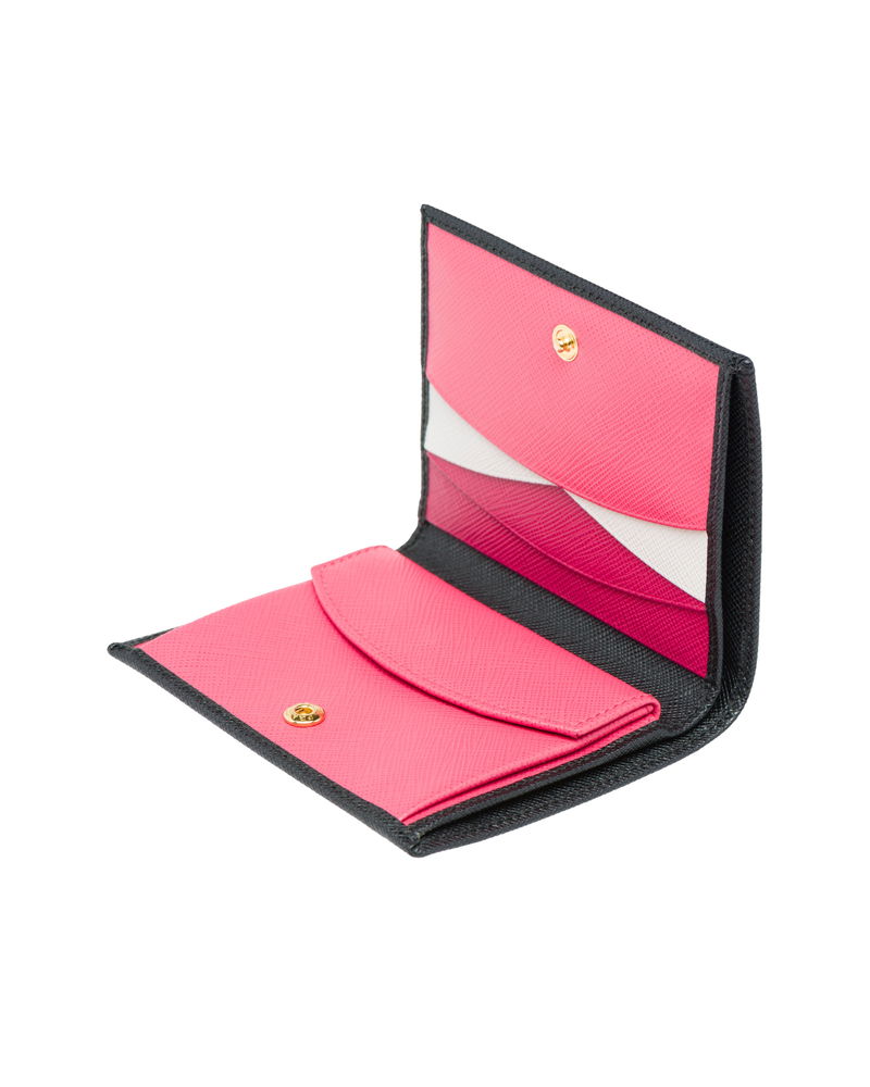 Small Saffiano Leather Wallet, Woman, Black/hibiscus