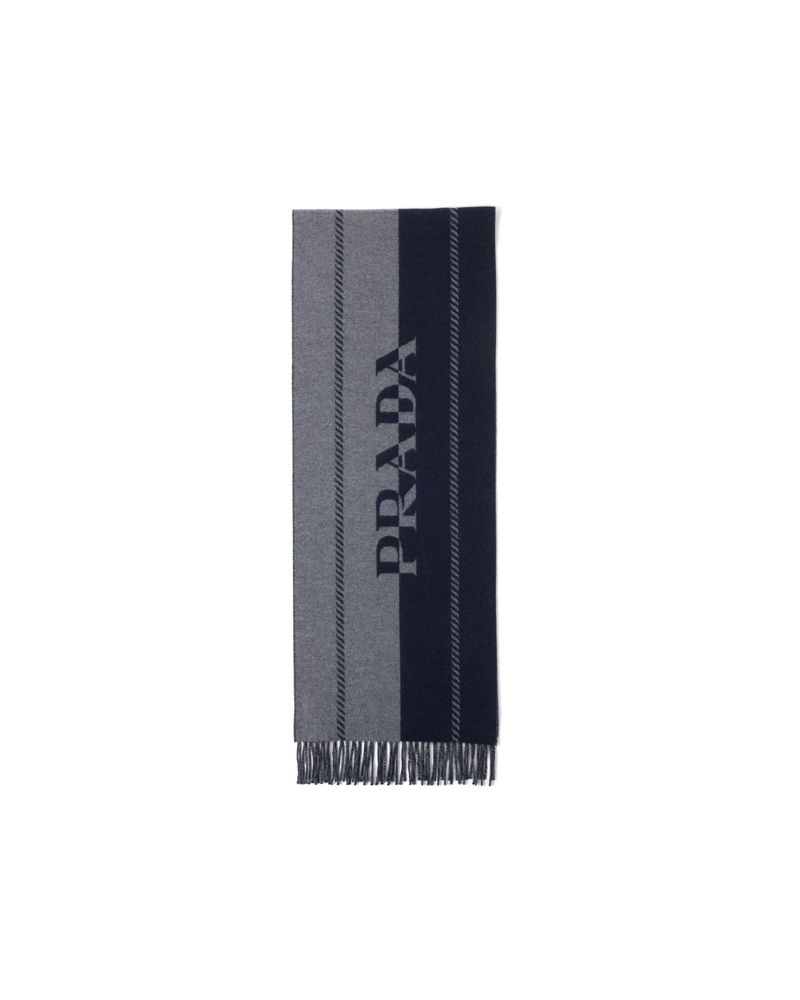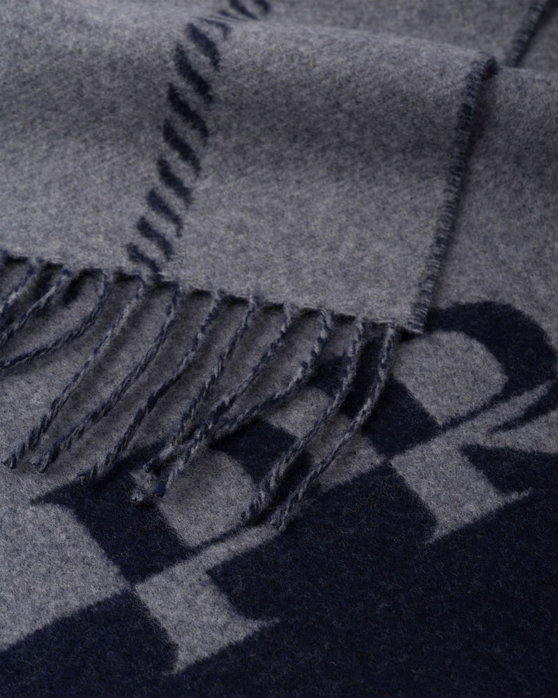 Small Wool Scarf With Jacquard Logo, Man, Grey/blue