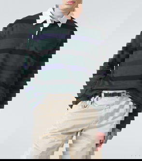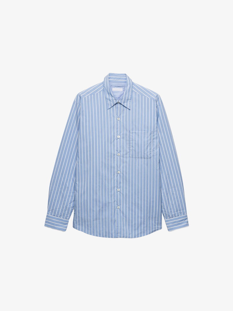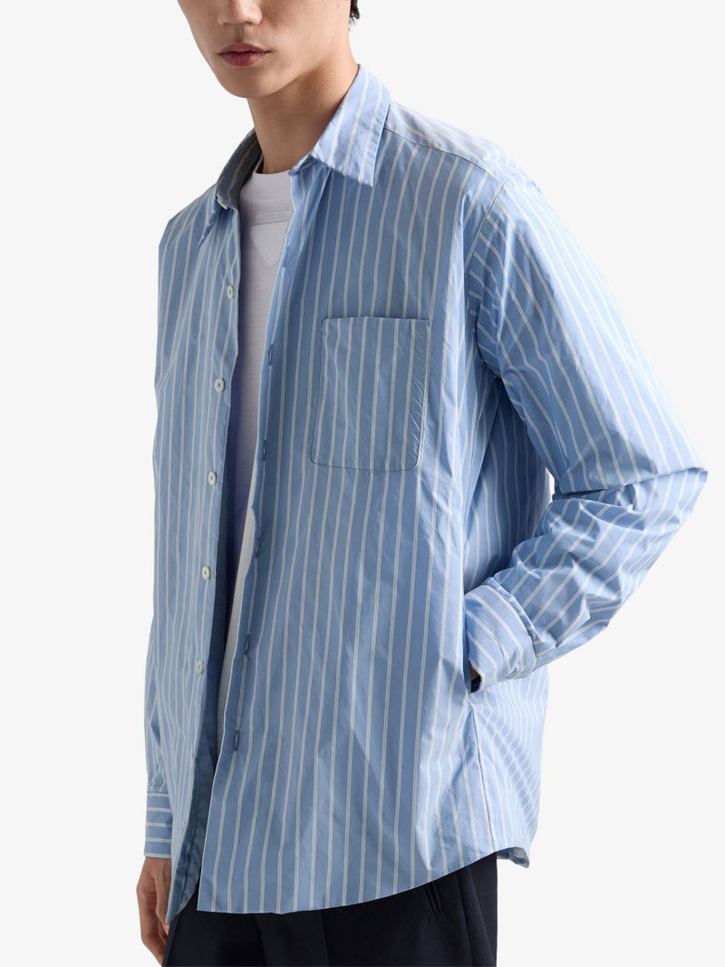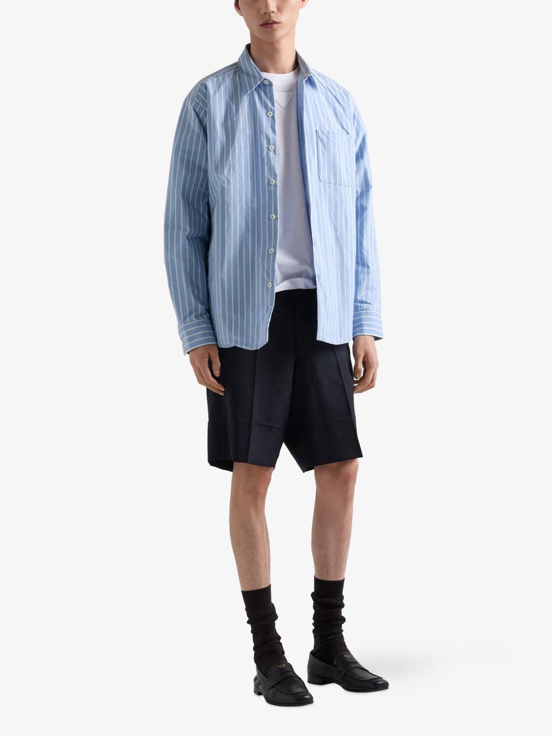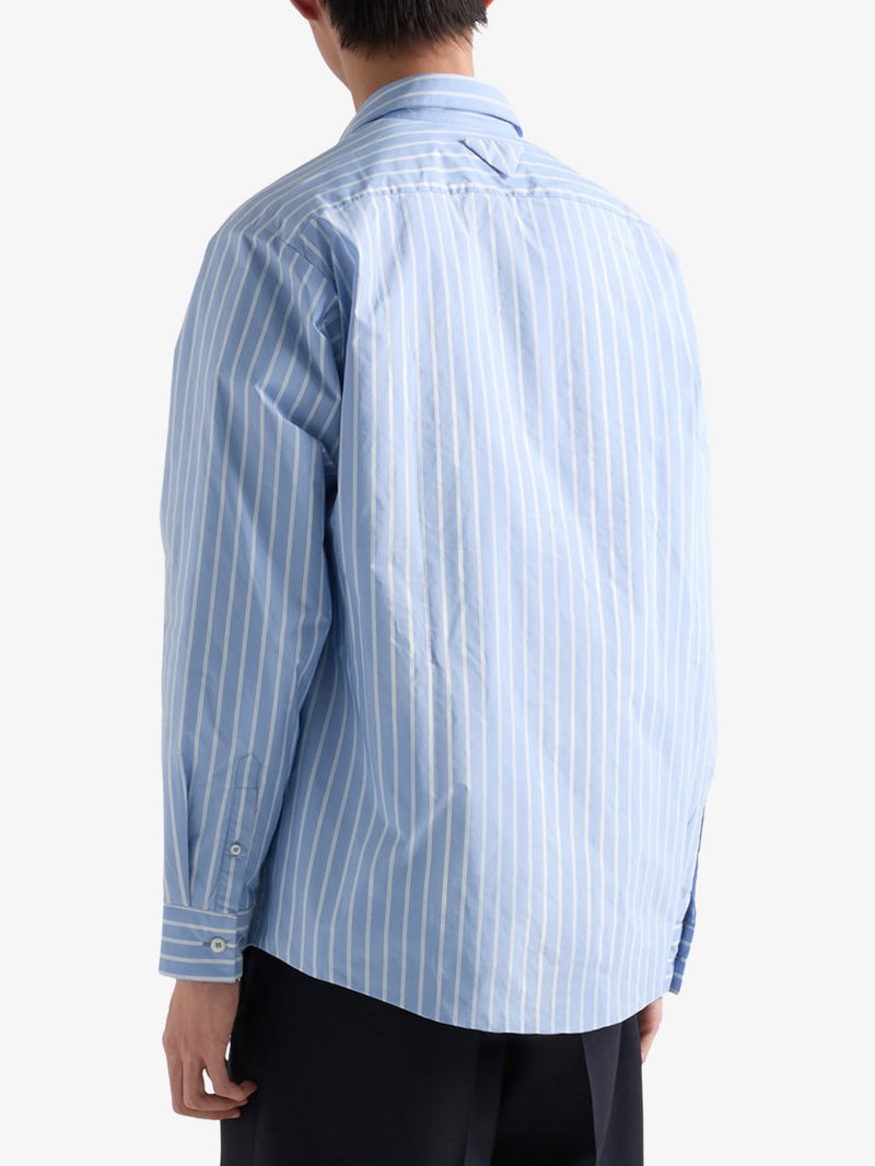 Prada cotton shirt. Button fastening. Straight-point collar. Regular fit, collar, long sleeves, buttoned cuffs, patch pocket at chest, logo print at chest pocket, stripe pattern.