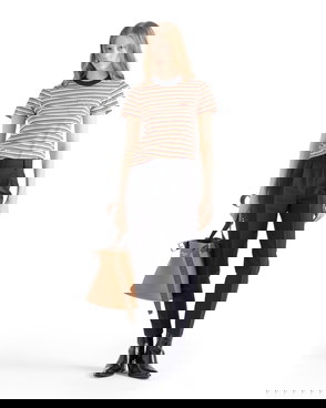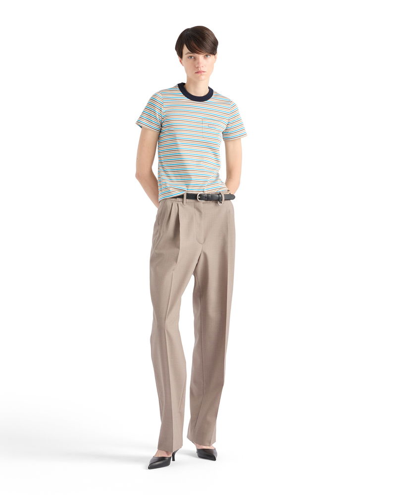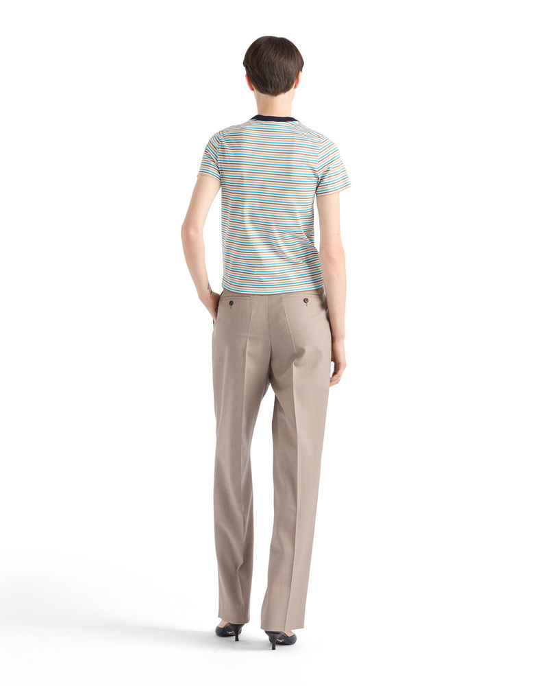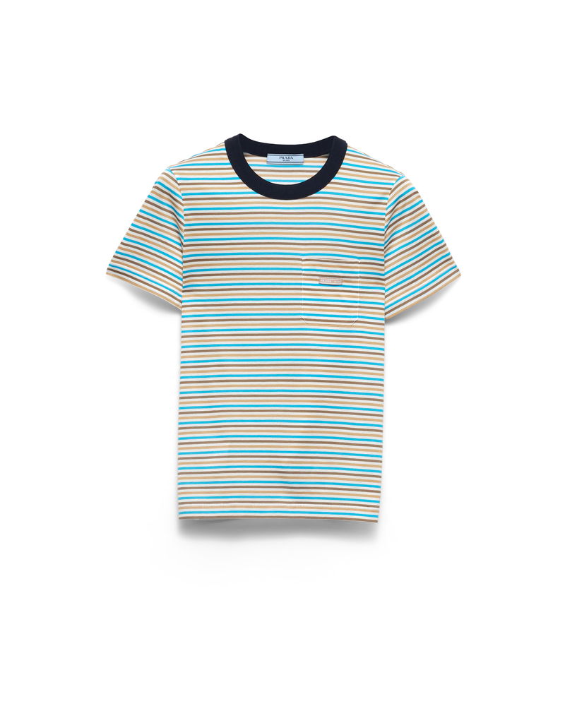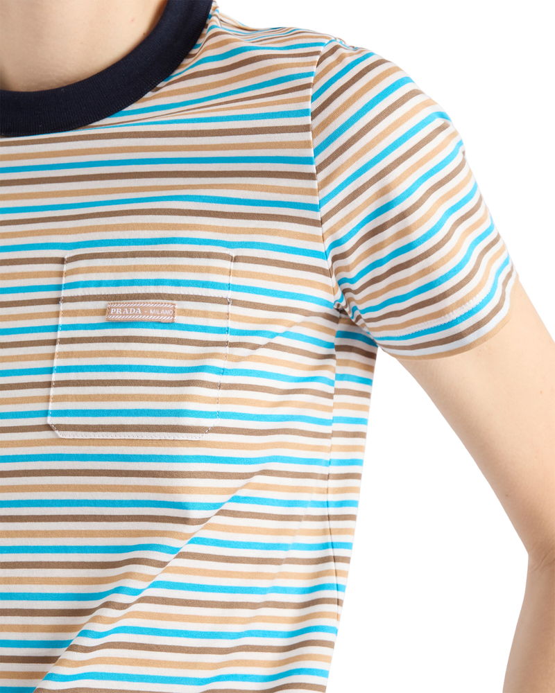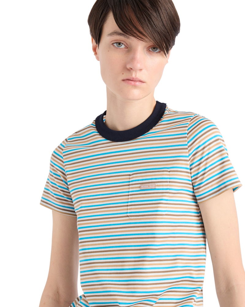 Striped Lisle Cotton T-shirt, Woman, Ivory/turquoise, Size 36