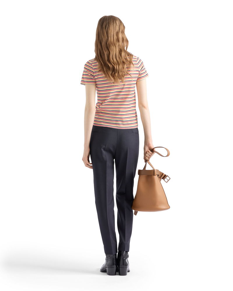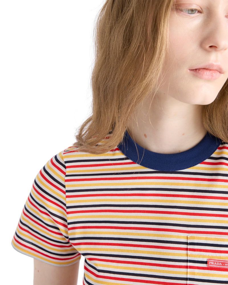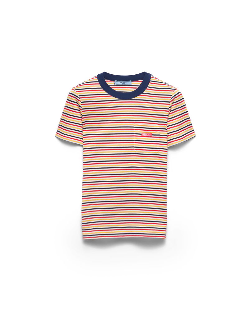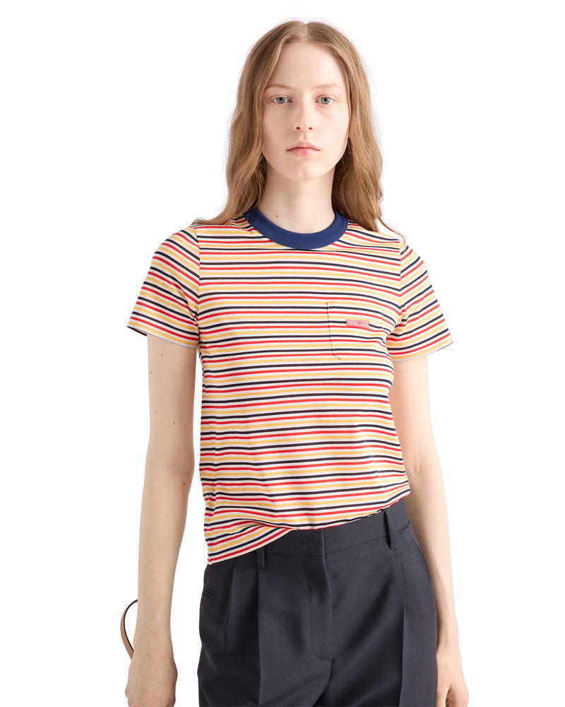 Striped Lisle Cotton T-shirt, Woman, Pomegranate Yellow/red, Size 36