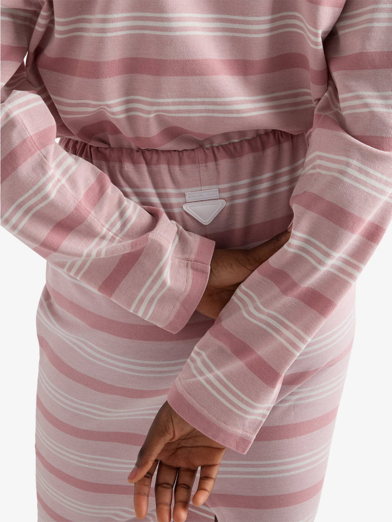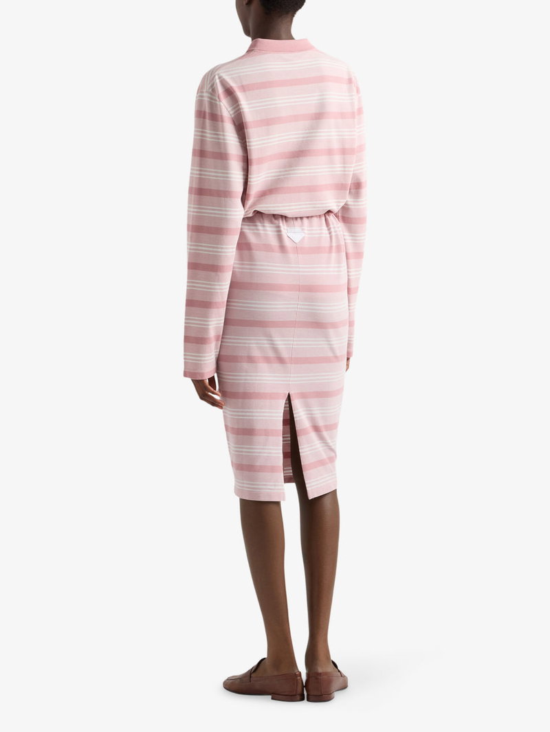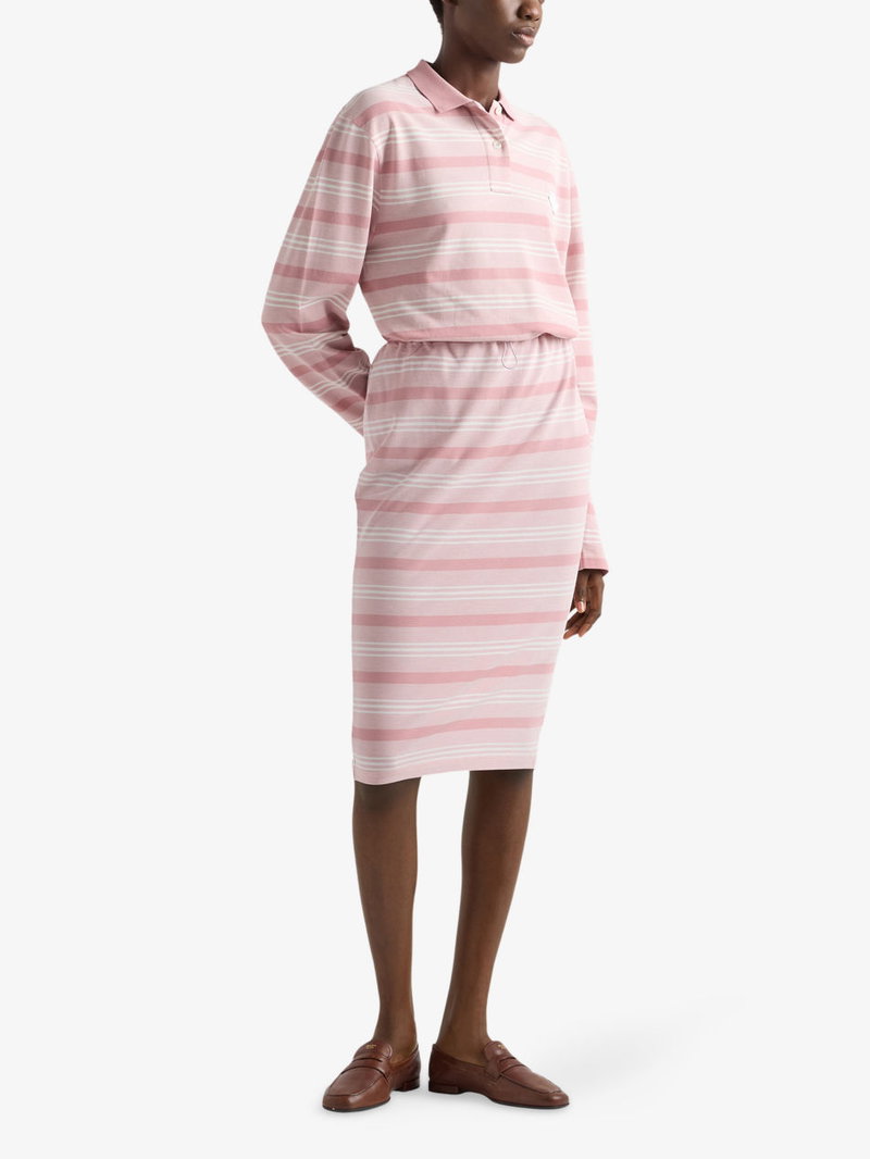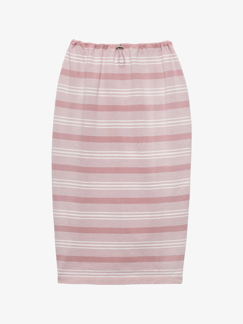 • Pencil silhouette, elasticated drawstring at the waist, fabric triangle logo with sartorial label, back slit, striped
