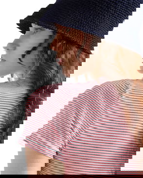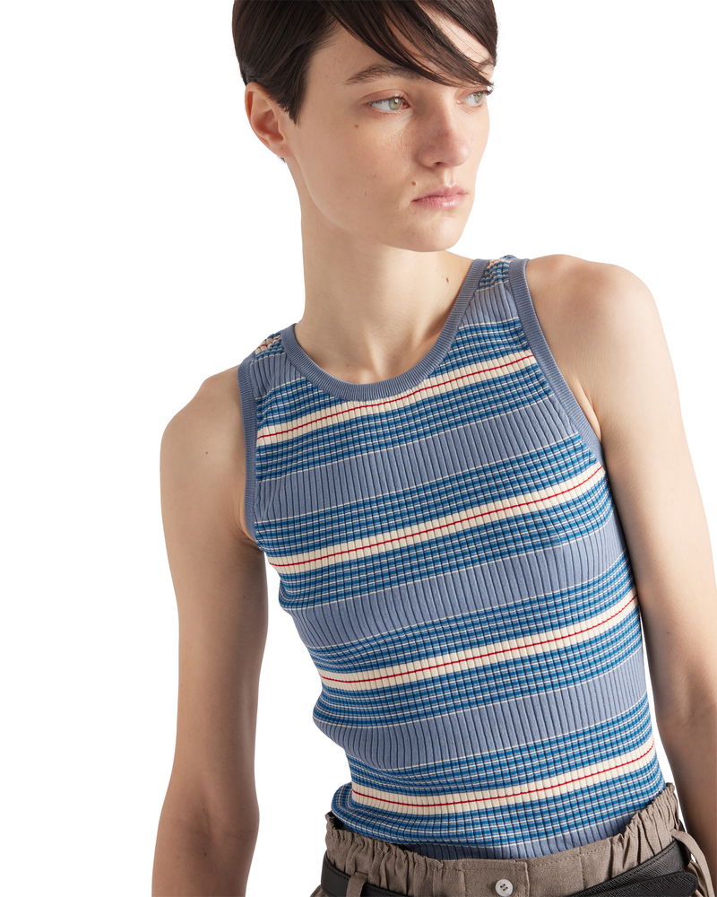 Striped Stretch Cotton Knit Top, Woman, Periwinkle Blue, Size 40
